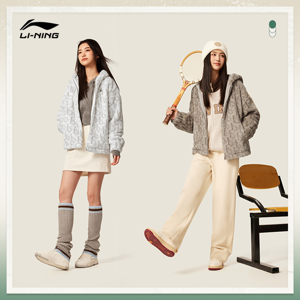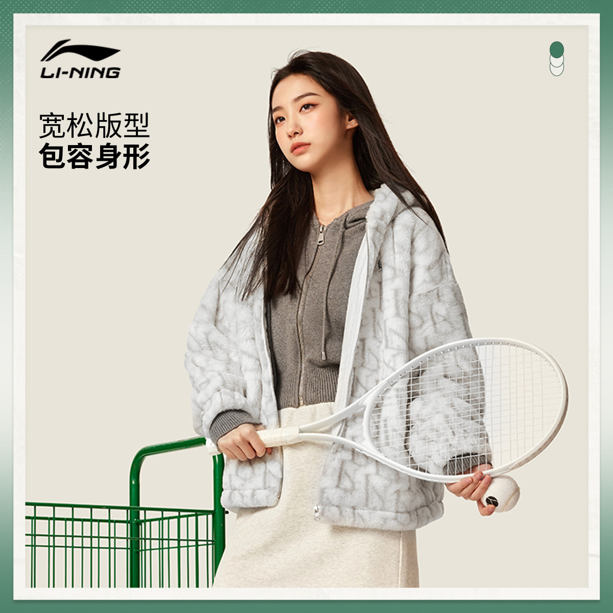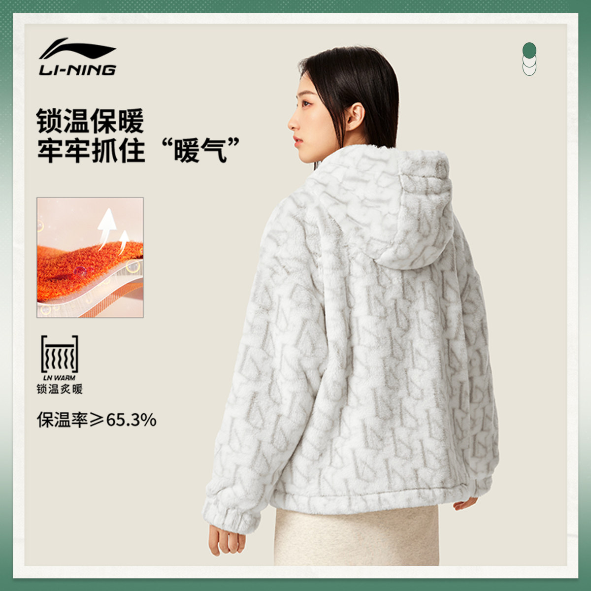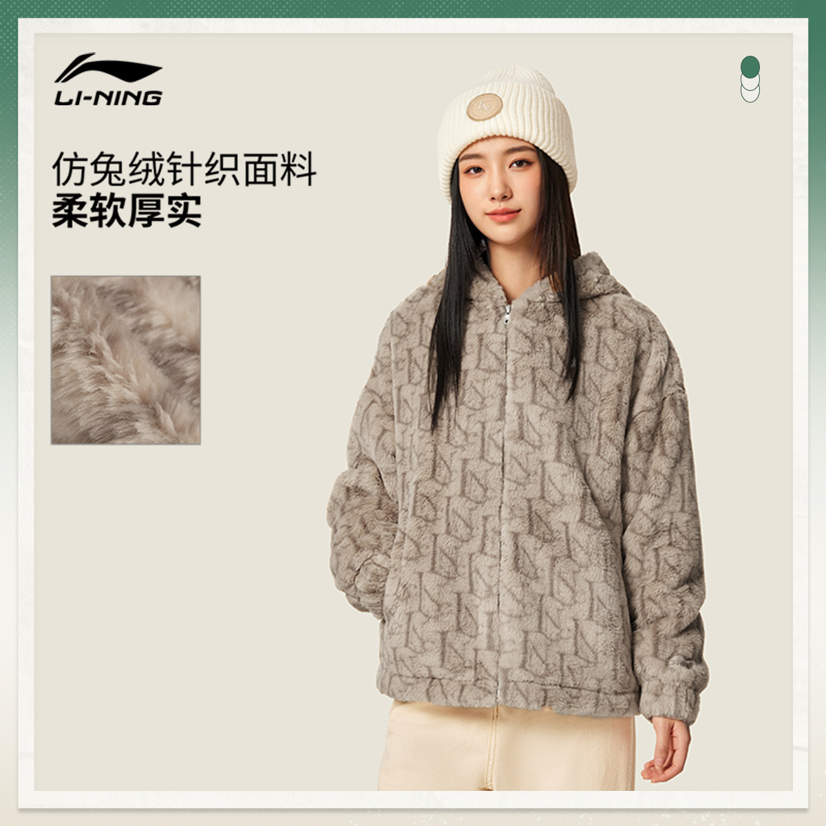 李宁仿兔绒外套女款春季新款连帽百搭休闲毛绒保暖休闲运动服大衣