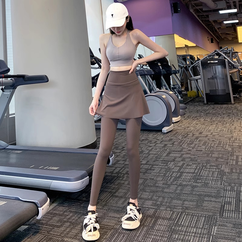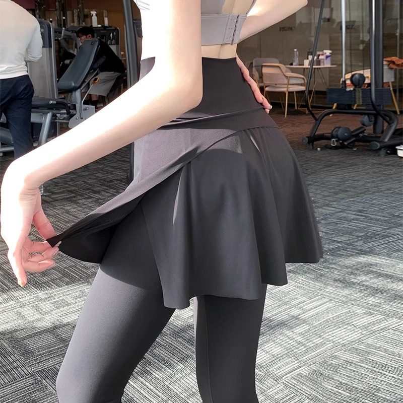 假两件运动长裤女外穿加绒小个子高腰屁帘跑步瑜伽健身裤裙打底裤