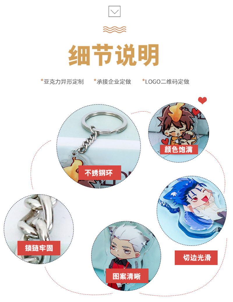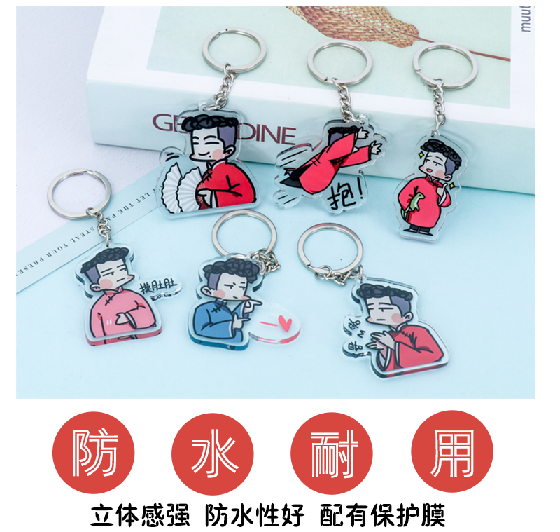 亚克力钥匙扣定制 diy动漫创意小挂件双面彩窗照片卡通链定做logo