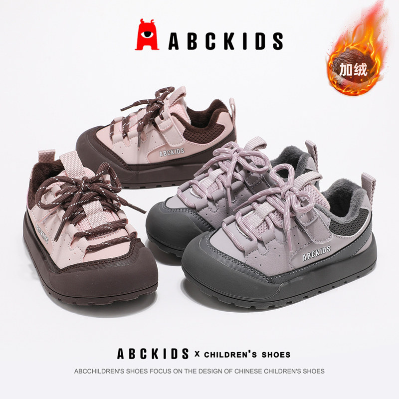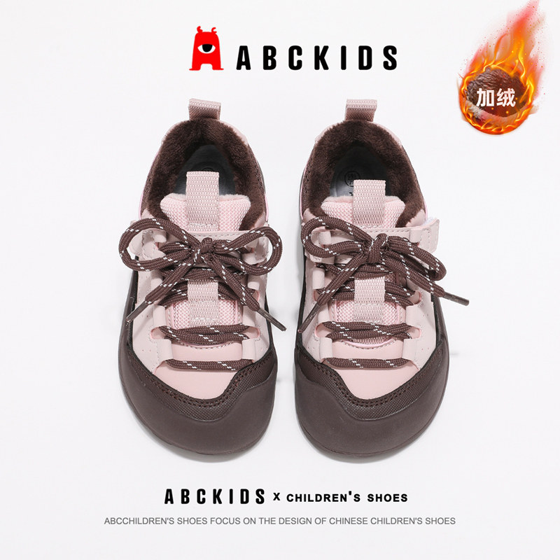 ABCkids童鞋女童运动鞋冬季加绒防滑跑步鞋子秋冬保暖儿童二棉鞋