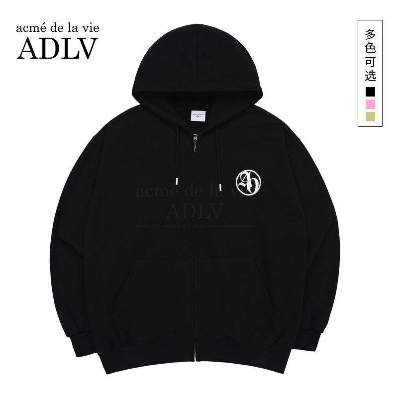 ADLV韩国潮牌重磅加厚秋冬款连帽卫衣圆圈符号徽标拉链上衣男女款