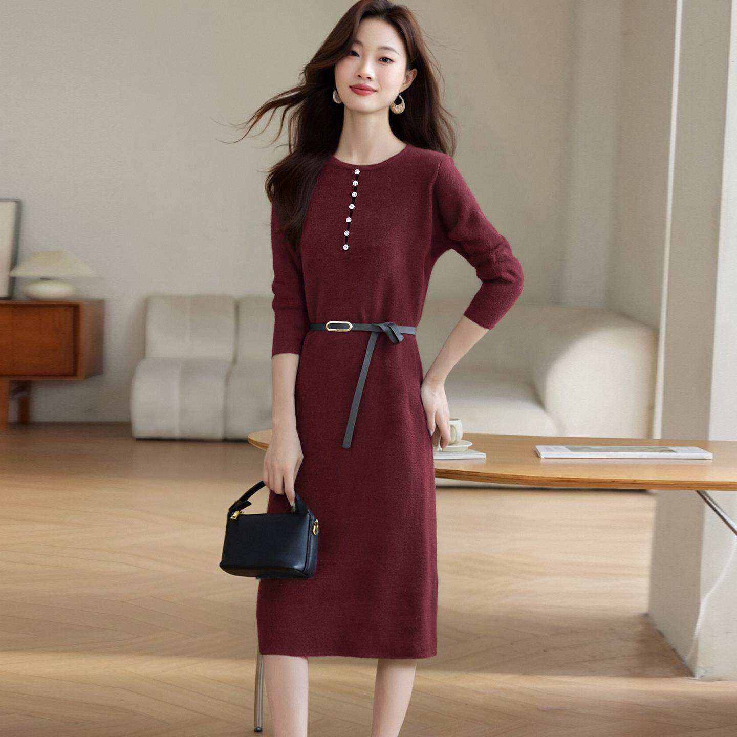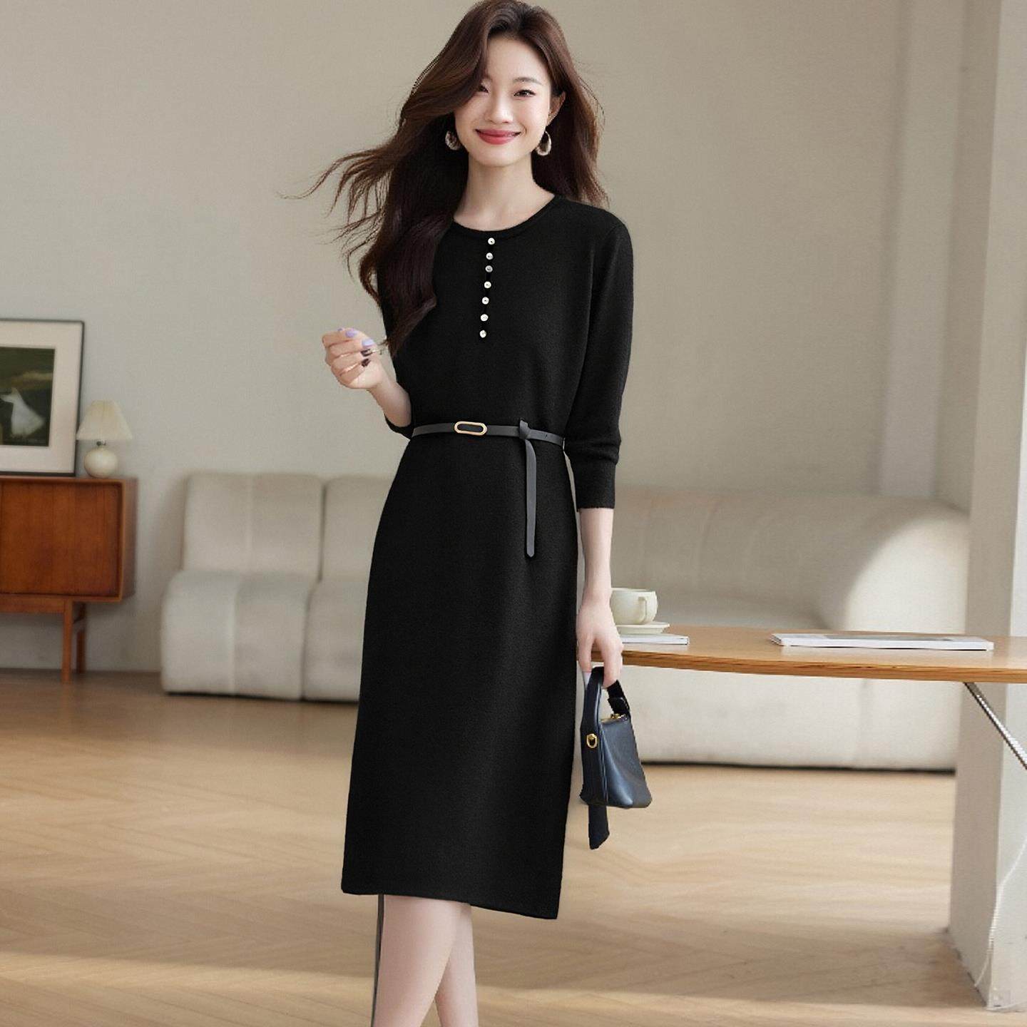 2025秋冬新款加厚打底针织连衣裙轻奢高级感冬天配大衣的内搭裙子