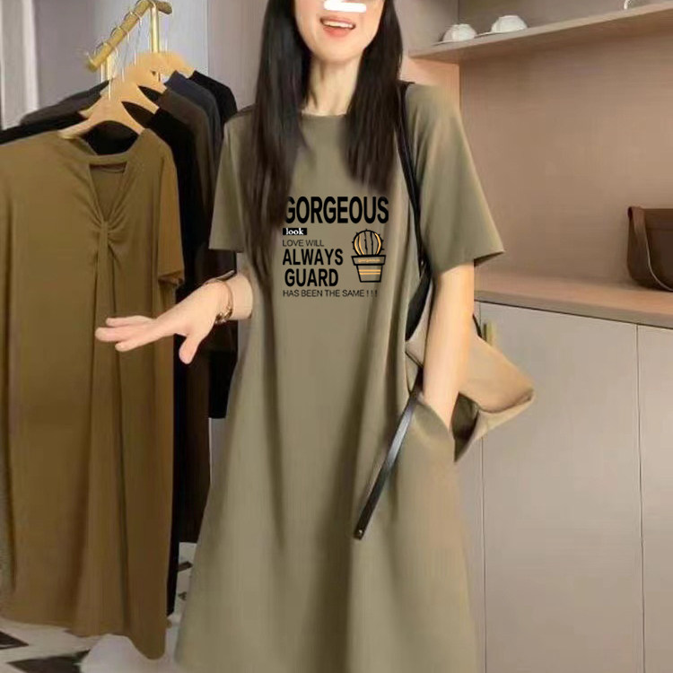 300斤特大码欧货大版藏肉宽松短袖连衣裙女胖MM休闲长款过膝T恤裙