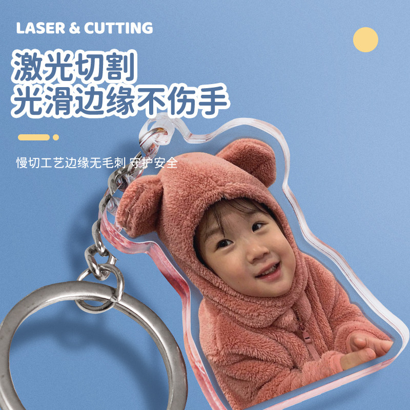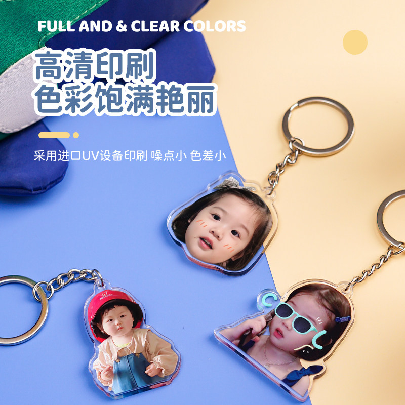 宝宝亚克力钥匙扣定制滴胶双面照片情侣挂饰头像书包挂件链定做