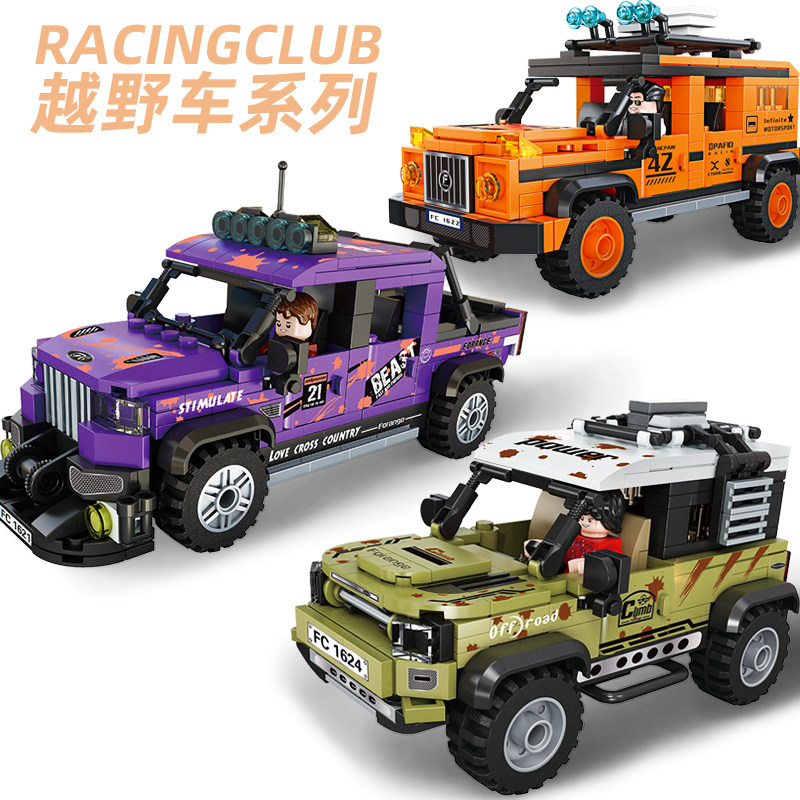中国拼装积木可转向吉普越野车卡车汽车模型玩具益智力男孩子礼物