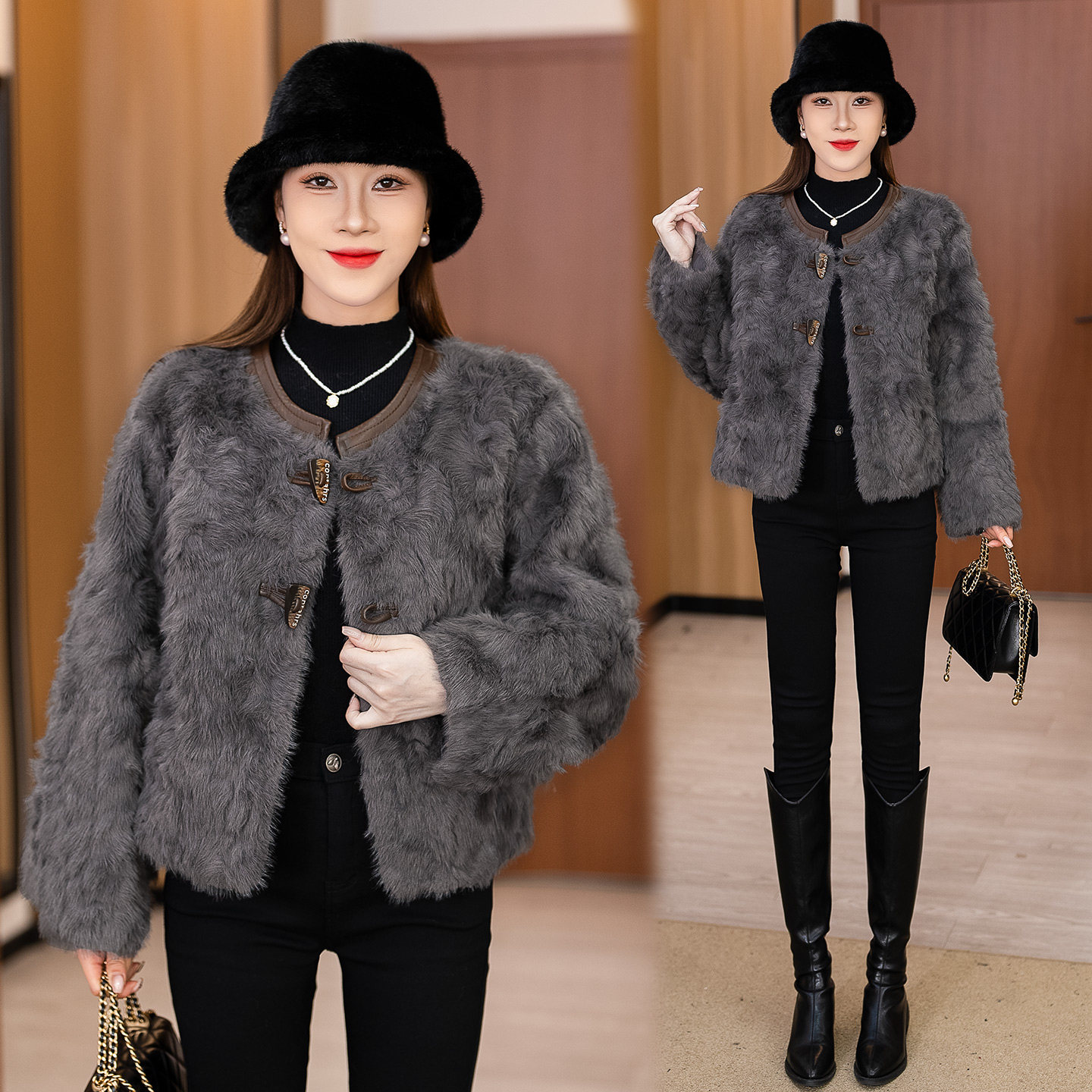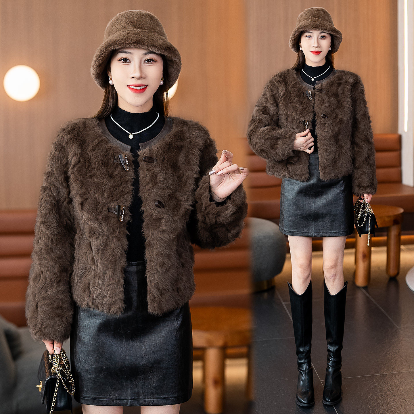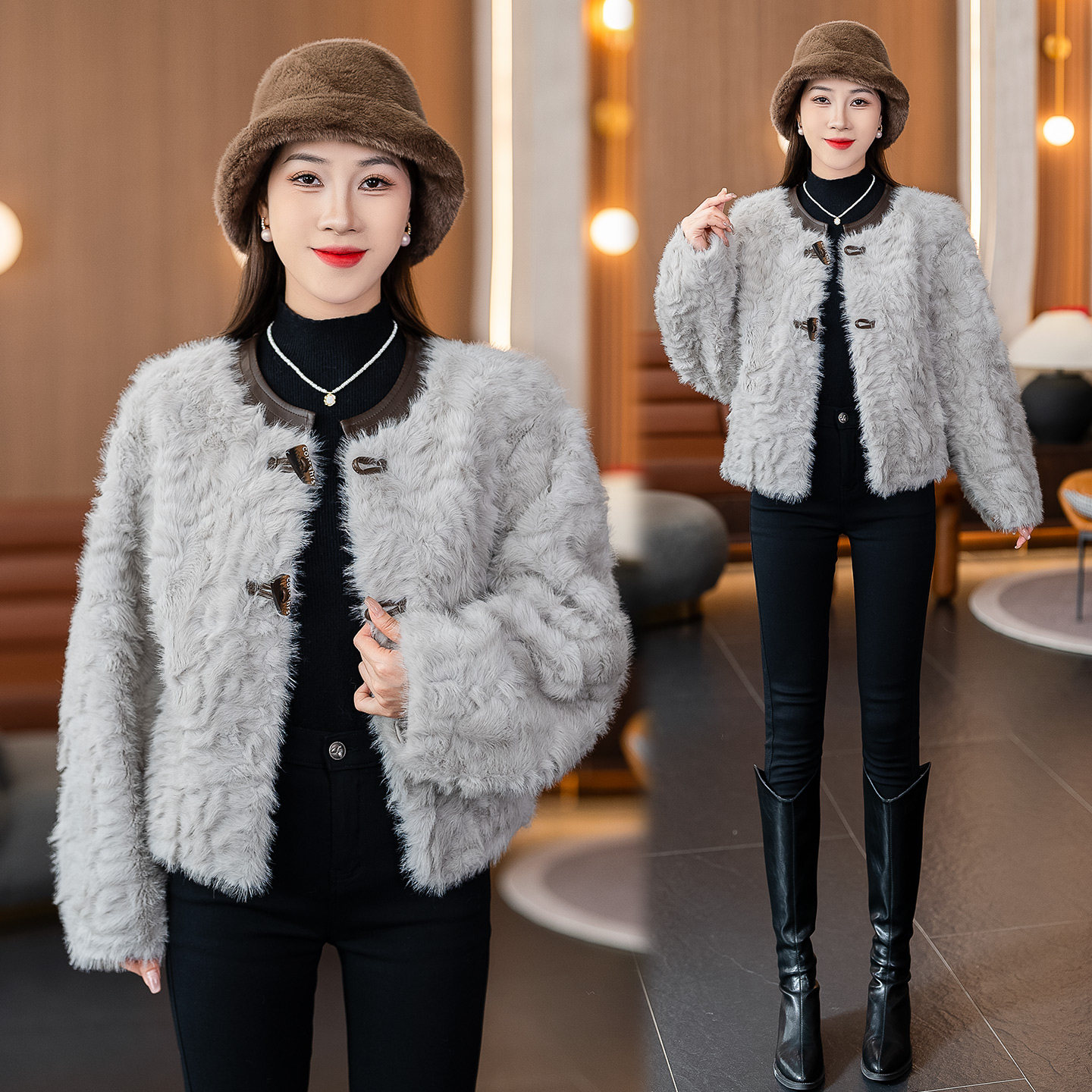 高级感皮毛一体短款毛毛外套女士冬装新款洋气质保暖白色皮草大衣