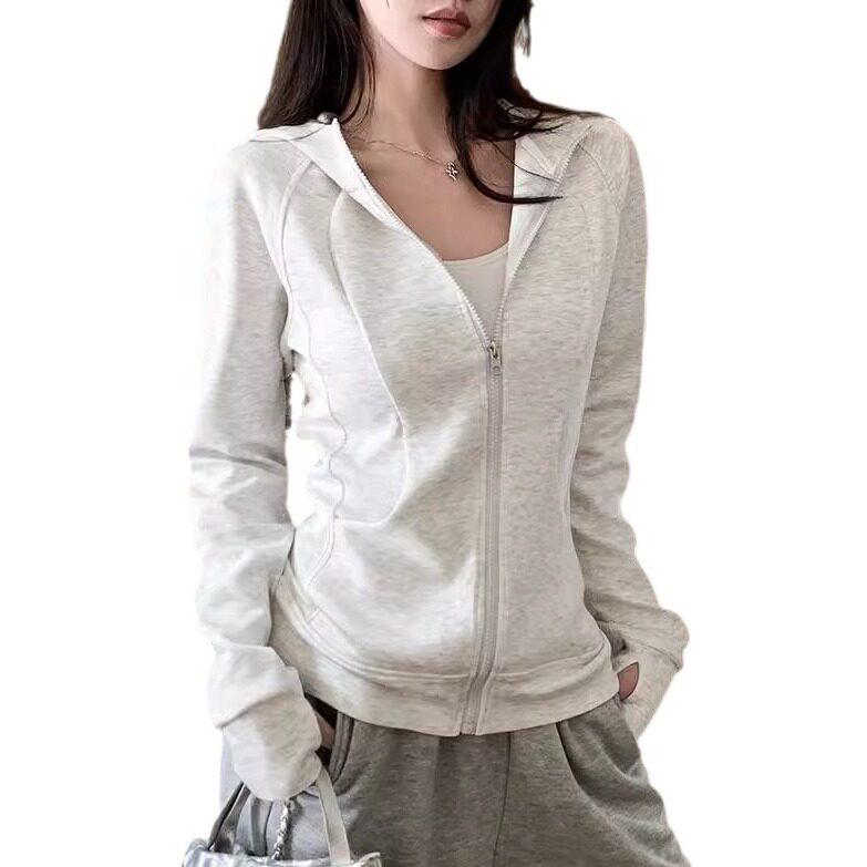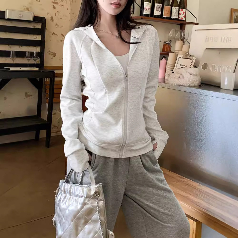 小个子免改裤长修身外套女款正肩卫衣春秋季衣服连帽开衫紧身短款