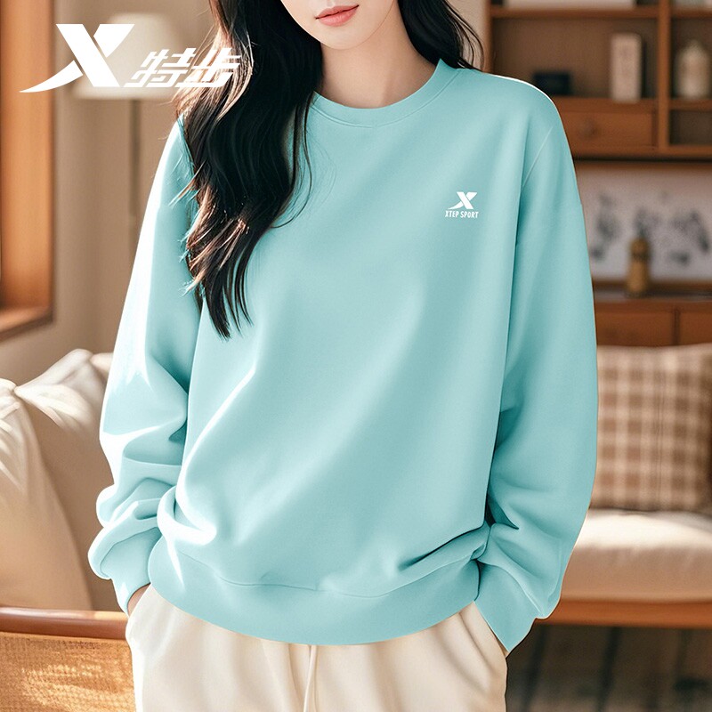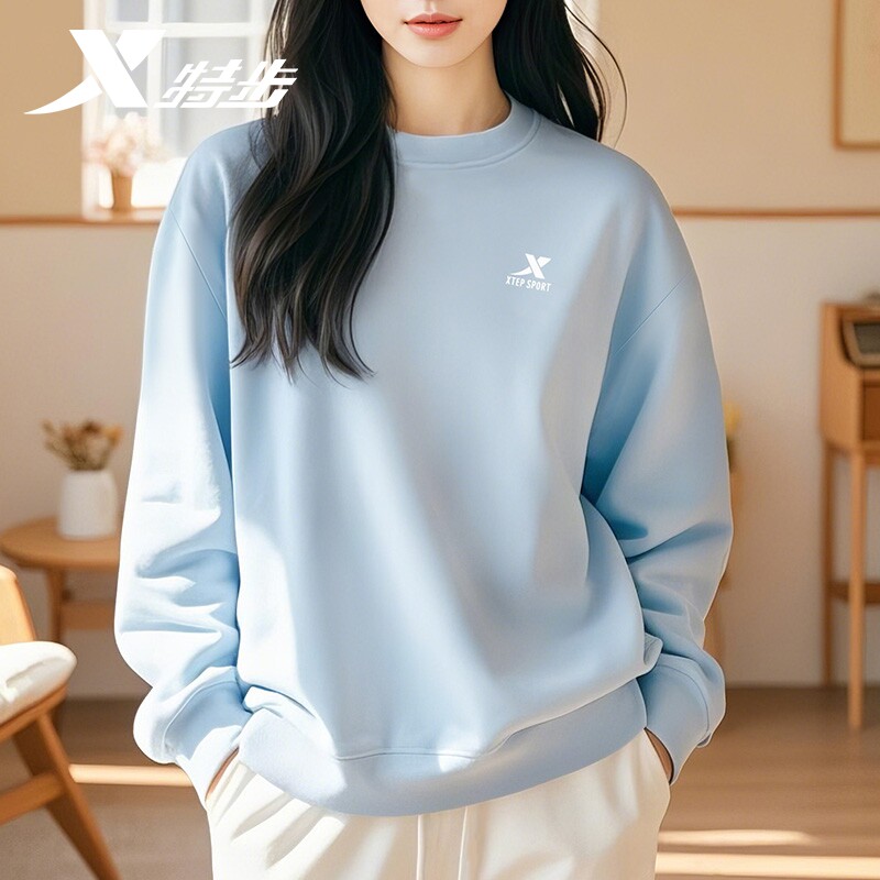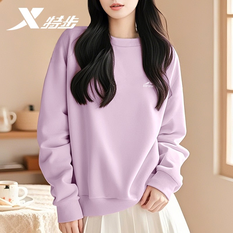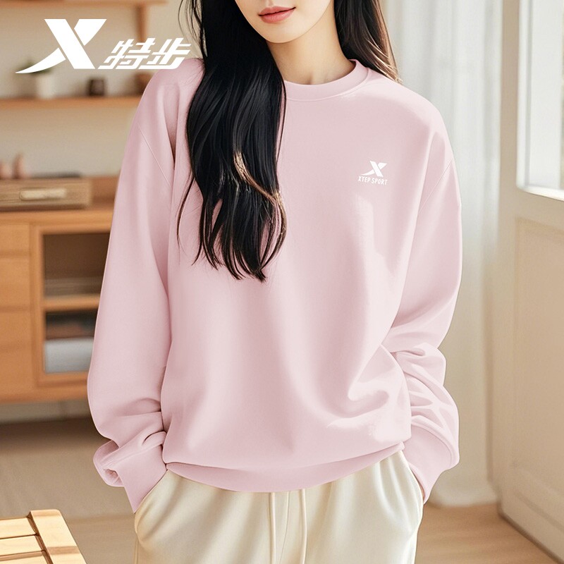 特步卫衣女款春季2026新款初中生圆领无帽品牌正品休闲运动服长袖