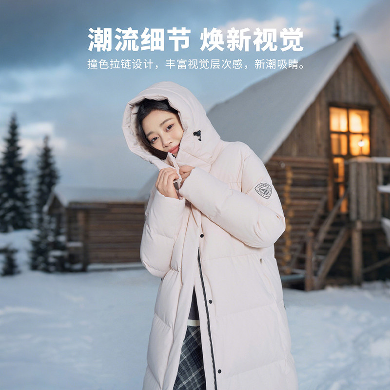 坦博尔羽绒服女款冬季中长款运动时尚加厚保暖好看可脱卸帽外套