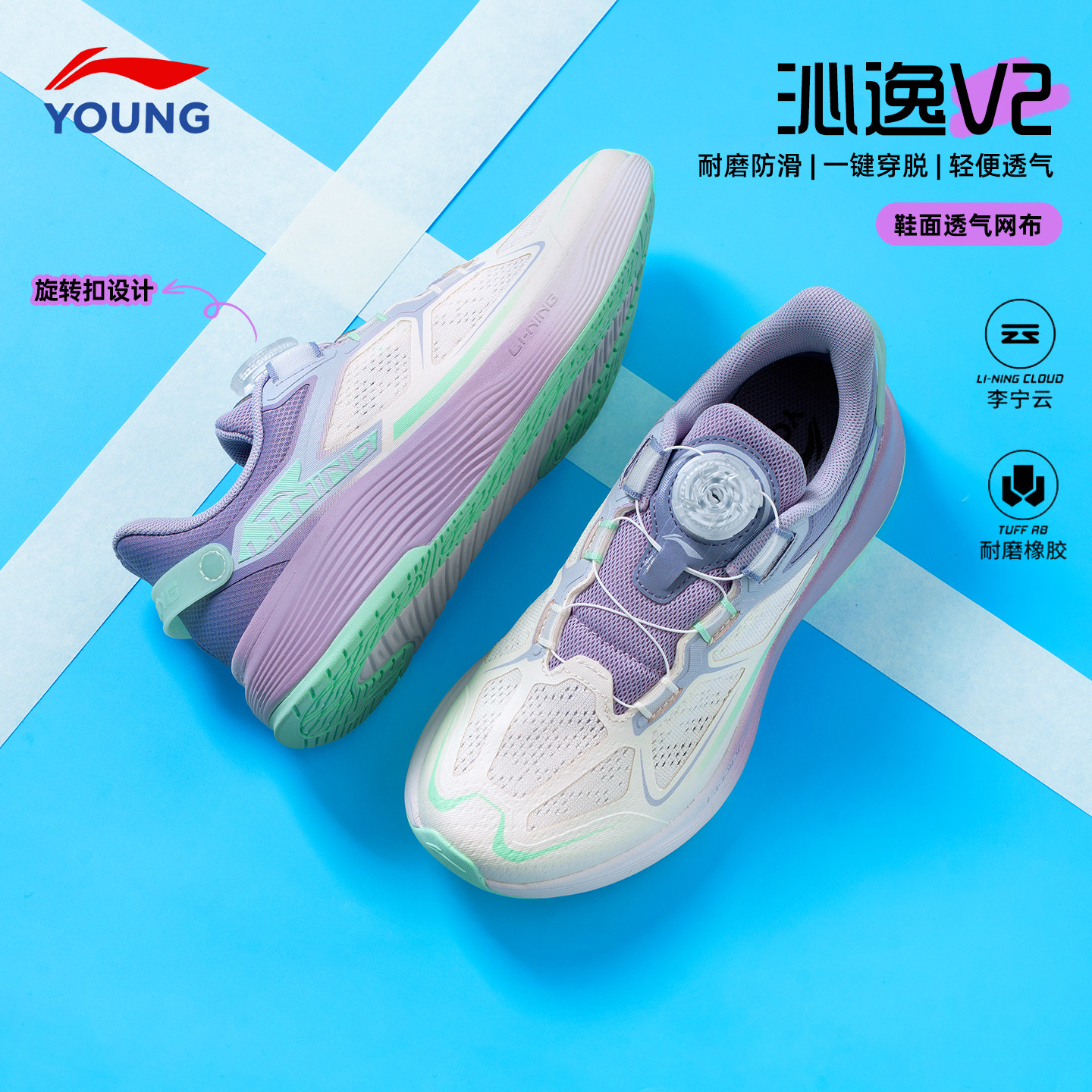 311线报网描述:李宁儿童跑步鞋女孩沁逸选纽扣官方正品授权