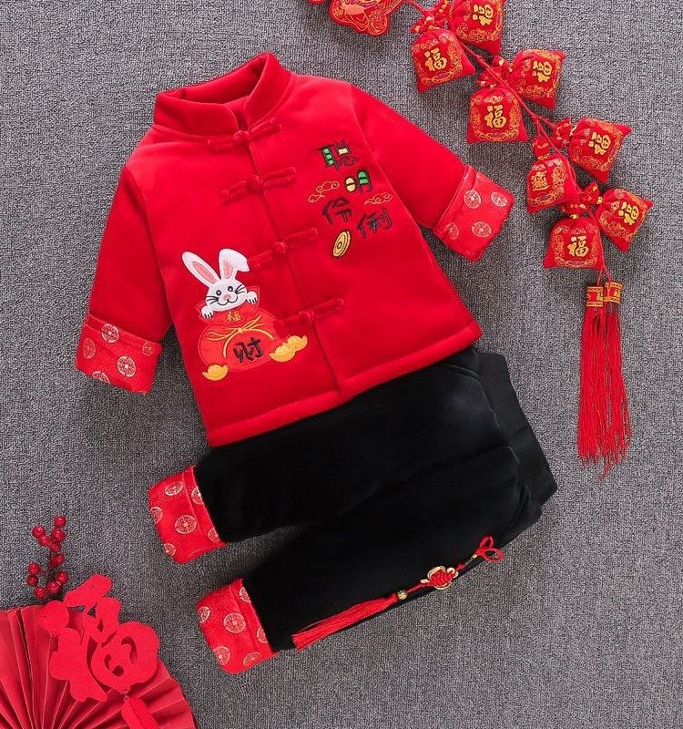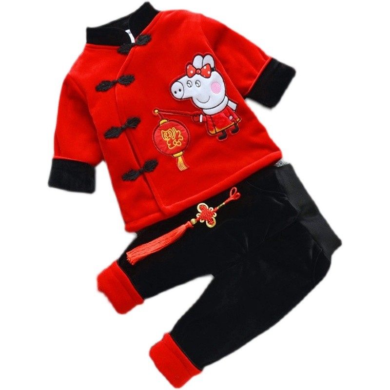宝宝唐装棉衣 小孩过年衣服1-2-3岁男童冬装套装加厚婴儿童新年装