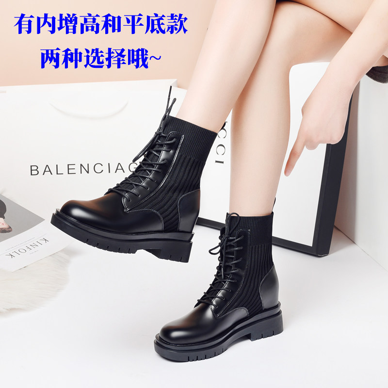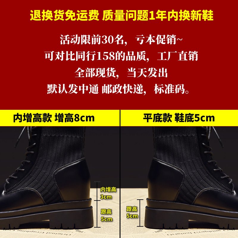 马丁靴女厚底小个子内增高8cm英伦风瘦显脚小潮ins酷短靴春秋单靴
