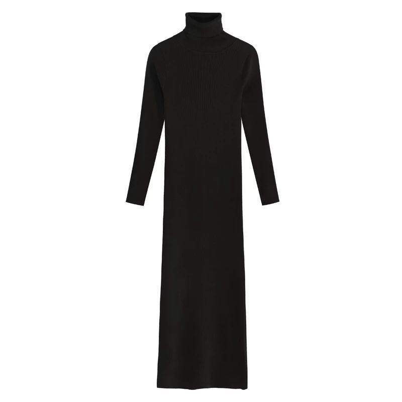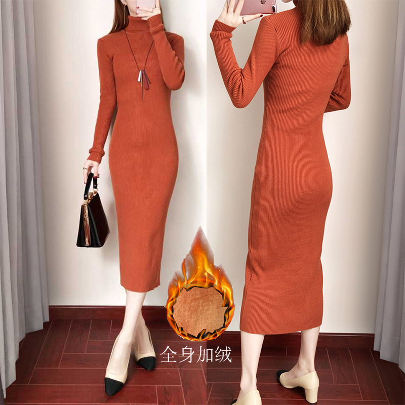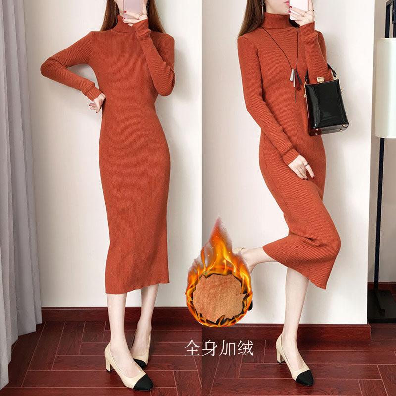加绒加厚冬款连衣裙女长款配大衣高领保暖内搭打底长裙过膝毛衣裙
