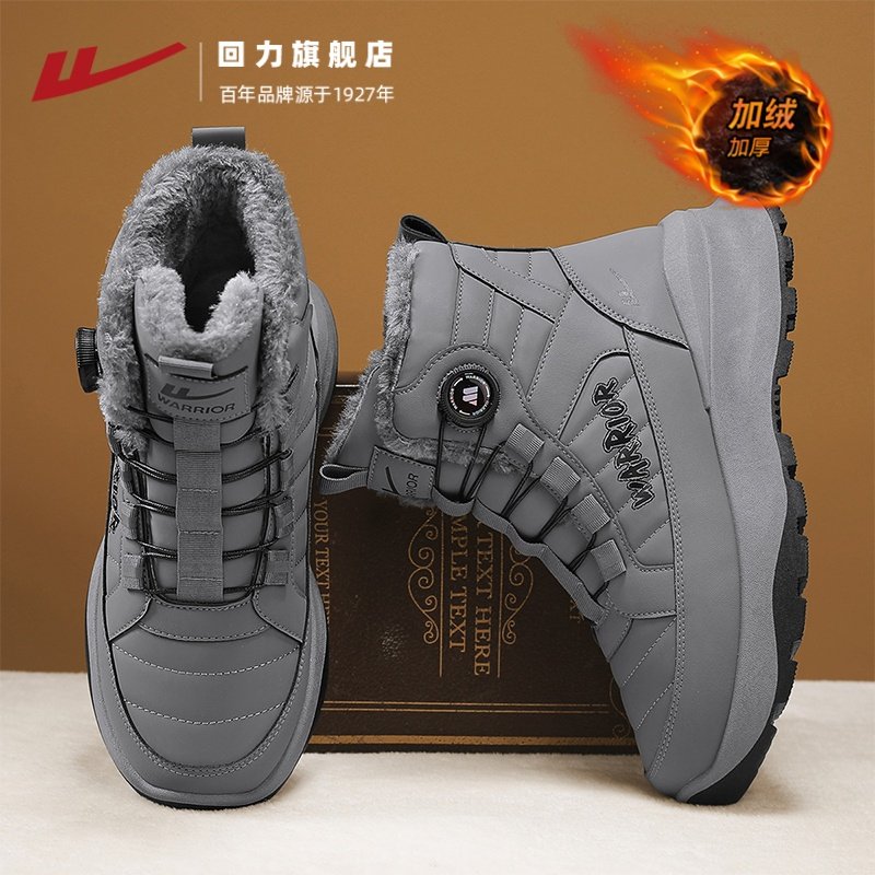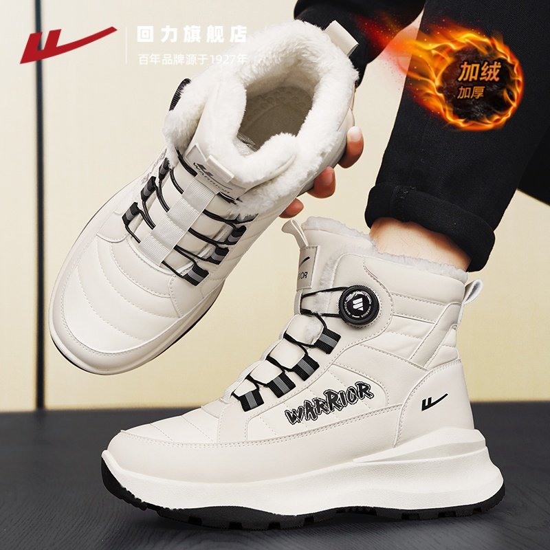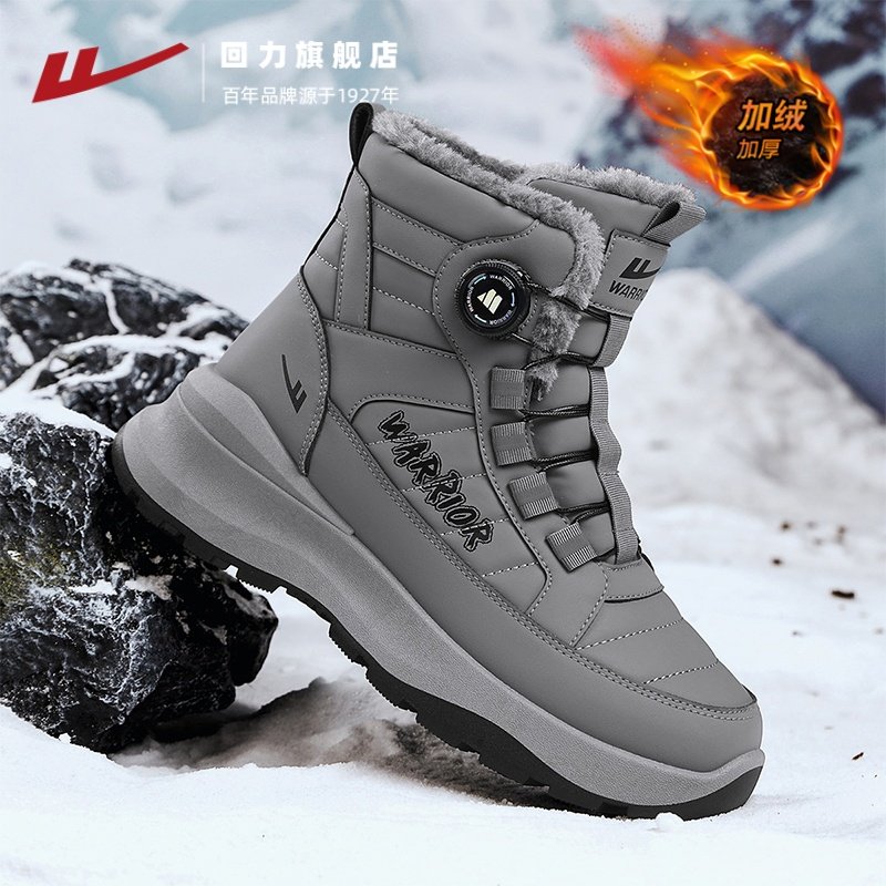 回力雪地靴男鞋2026新款冬季加绒保暖加厚旋钮高帮复古防寒大棉鞋