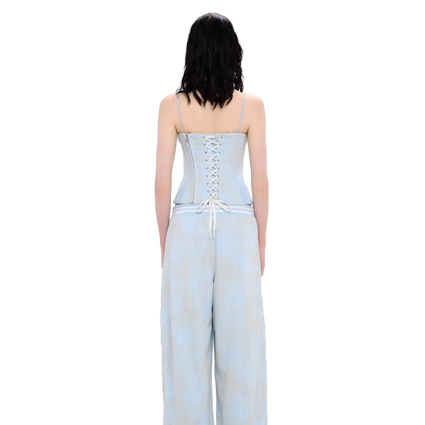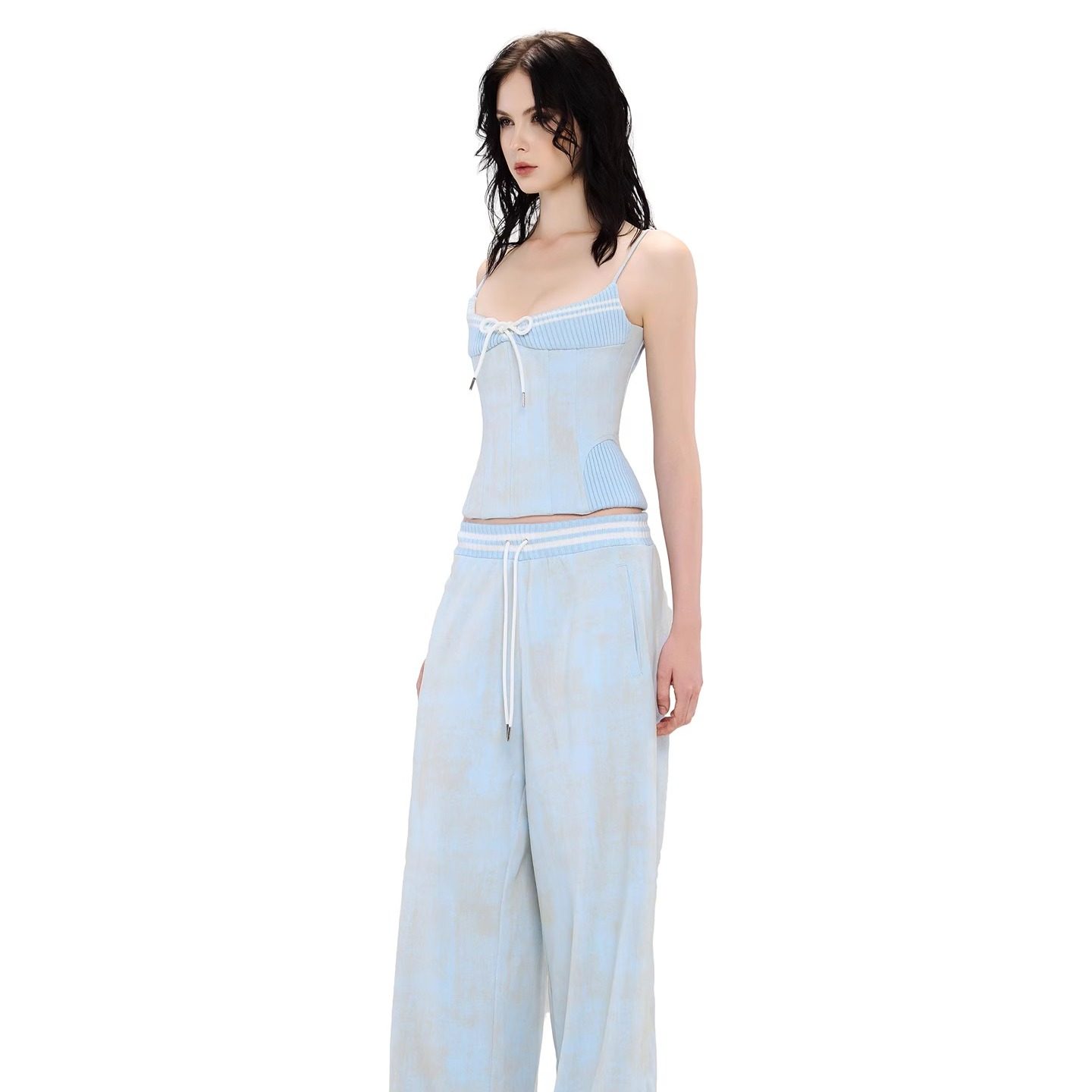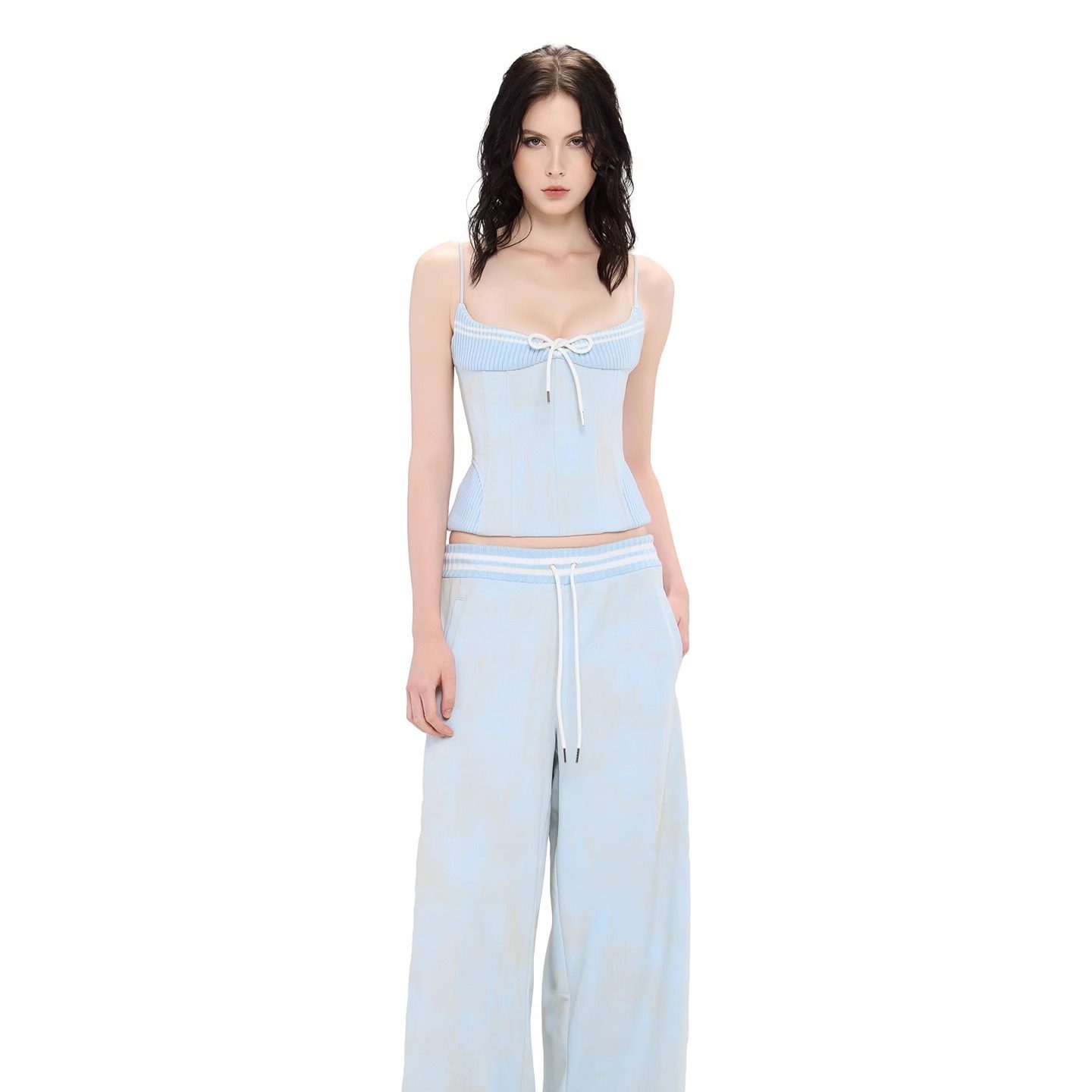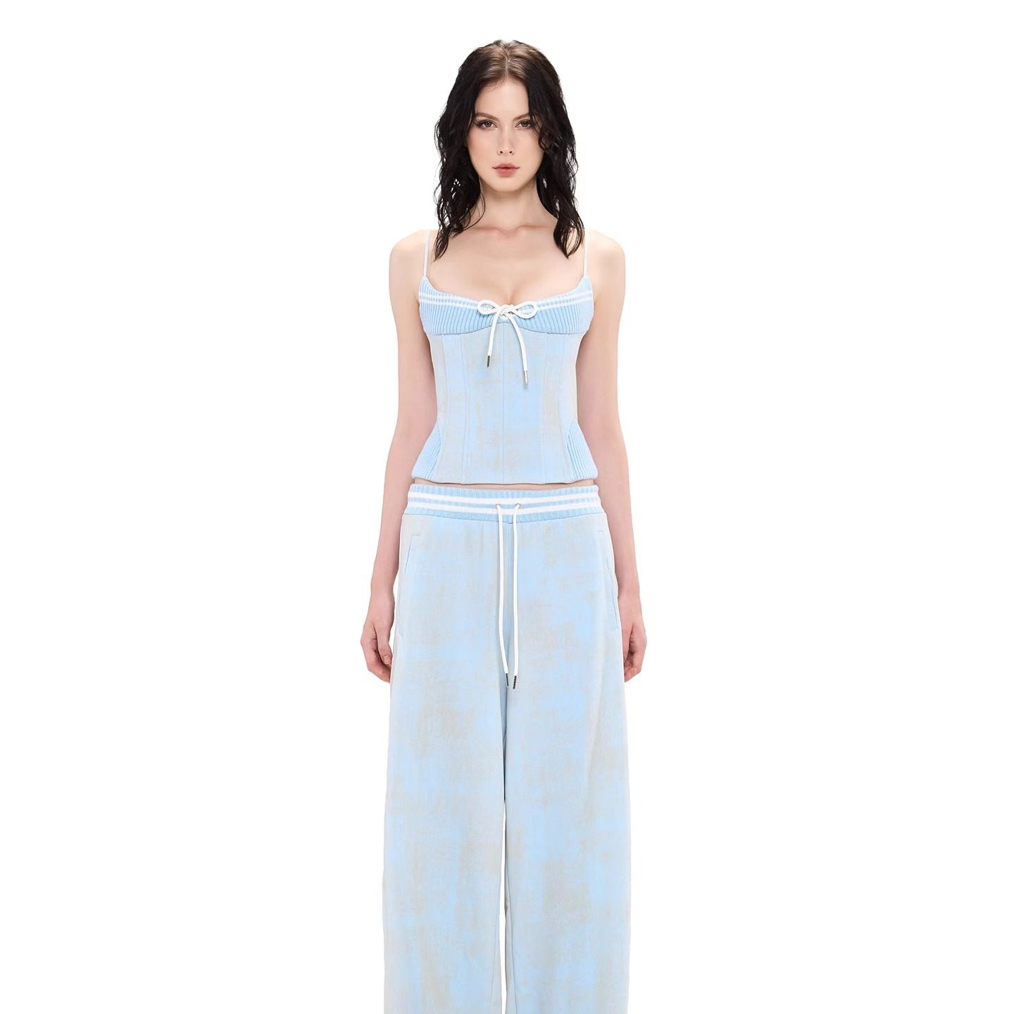 LSOUL 2025新款淡蓝色螺纹套装清新随性休闲风时尚女装套装