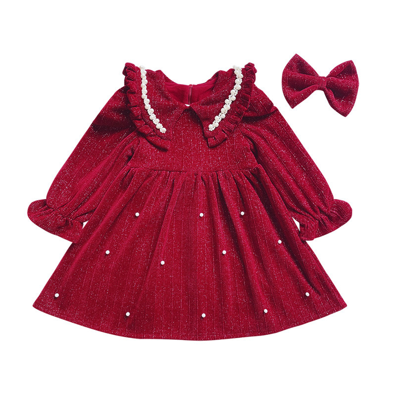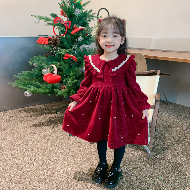 拜年服女童红色连衣裙冬装2026新款过年喜庆丝绒公主裙子过年衣服