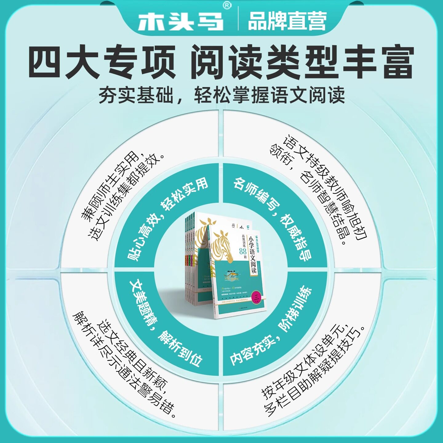 2026木头马阅读力测评一二三年级上四五六年级上册下册小学语文阅读理解专项训练书高效训练88篇课外阅读理解强化训练一百篇人教版