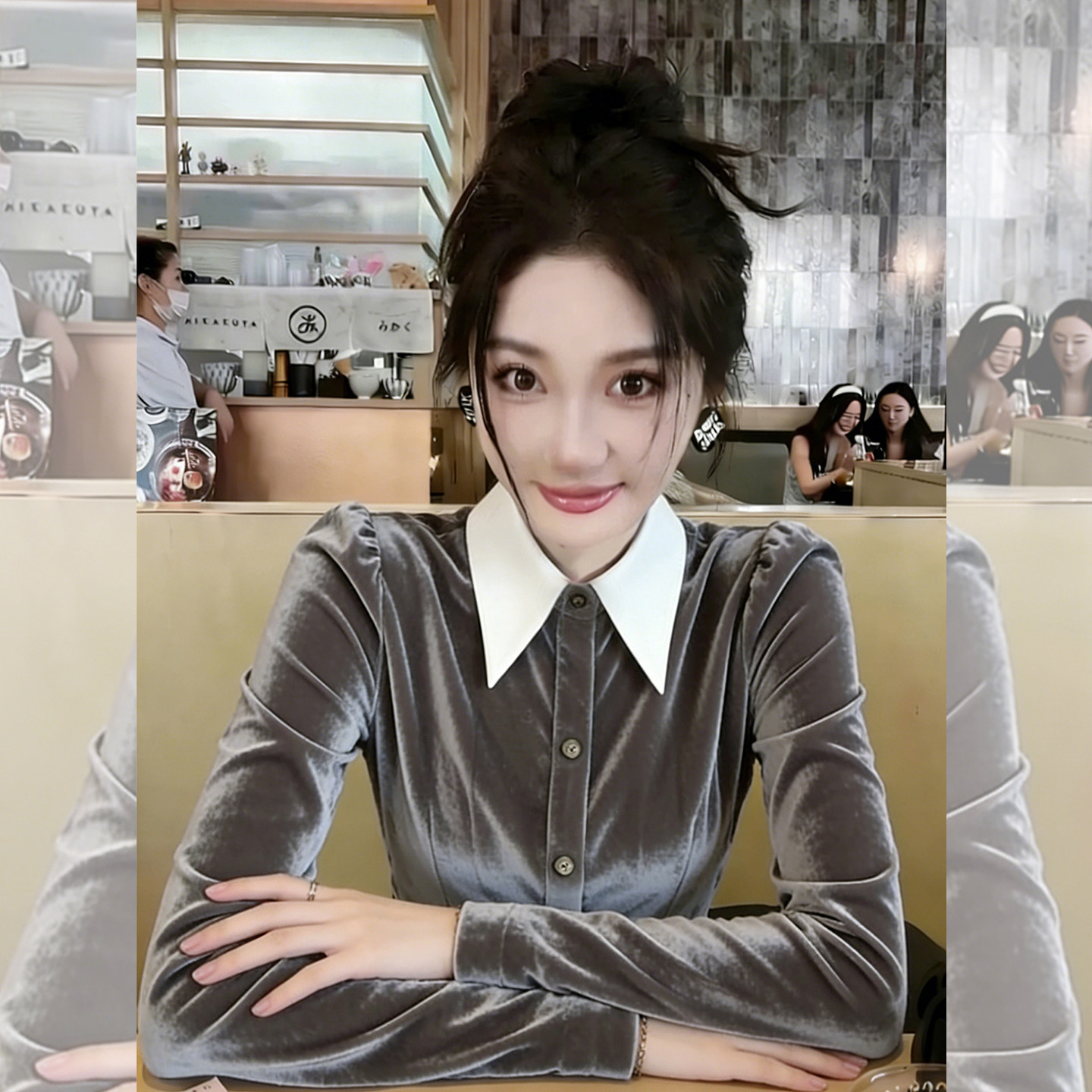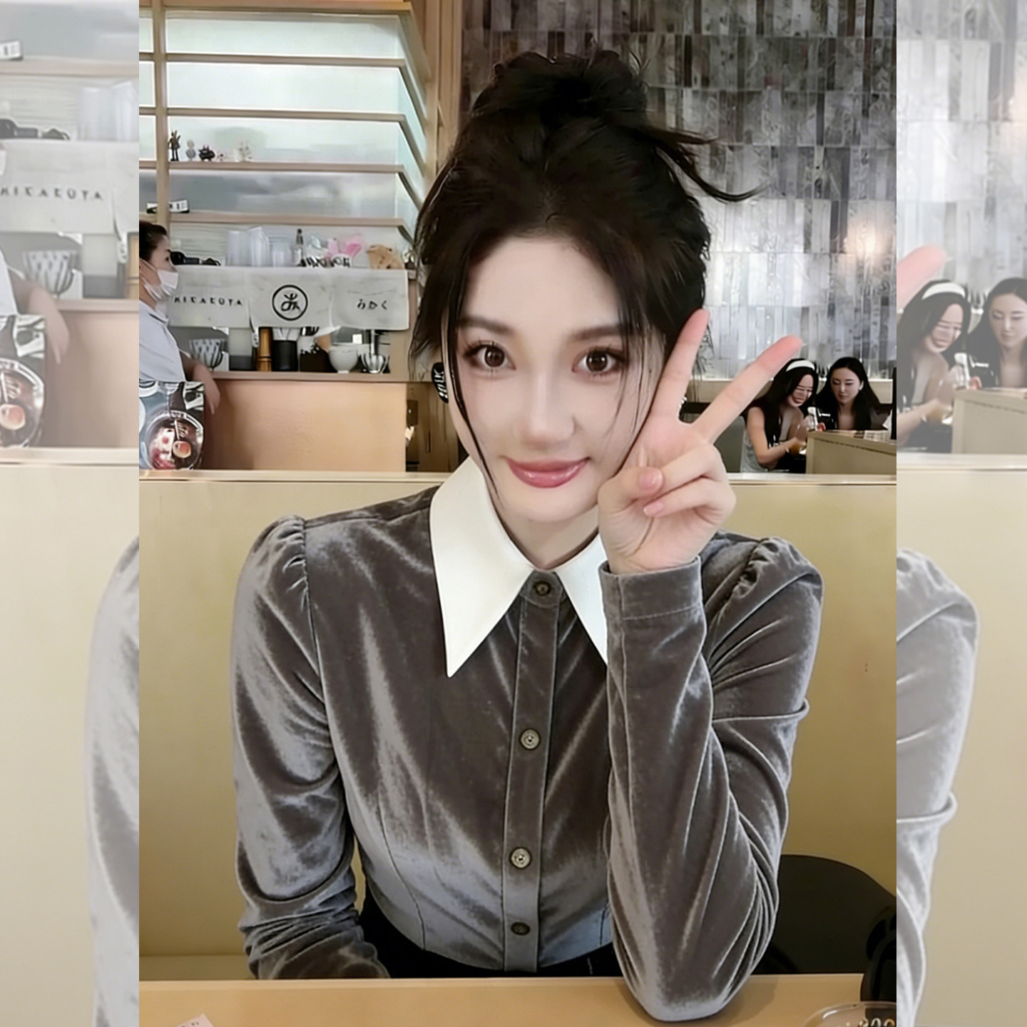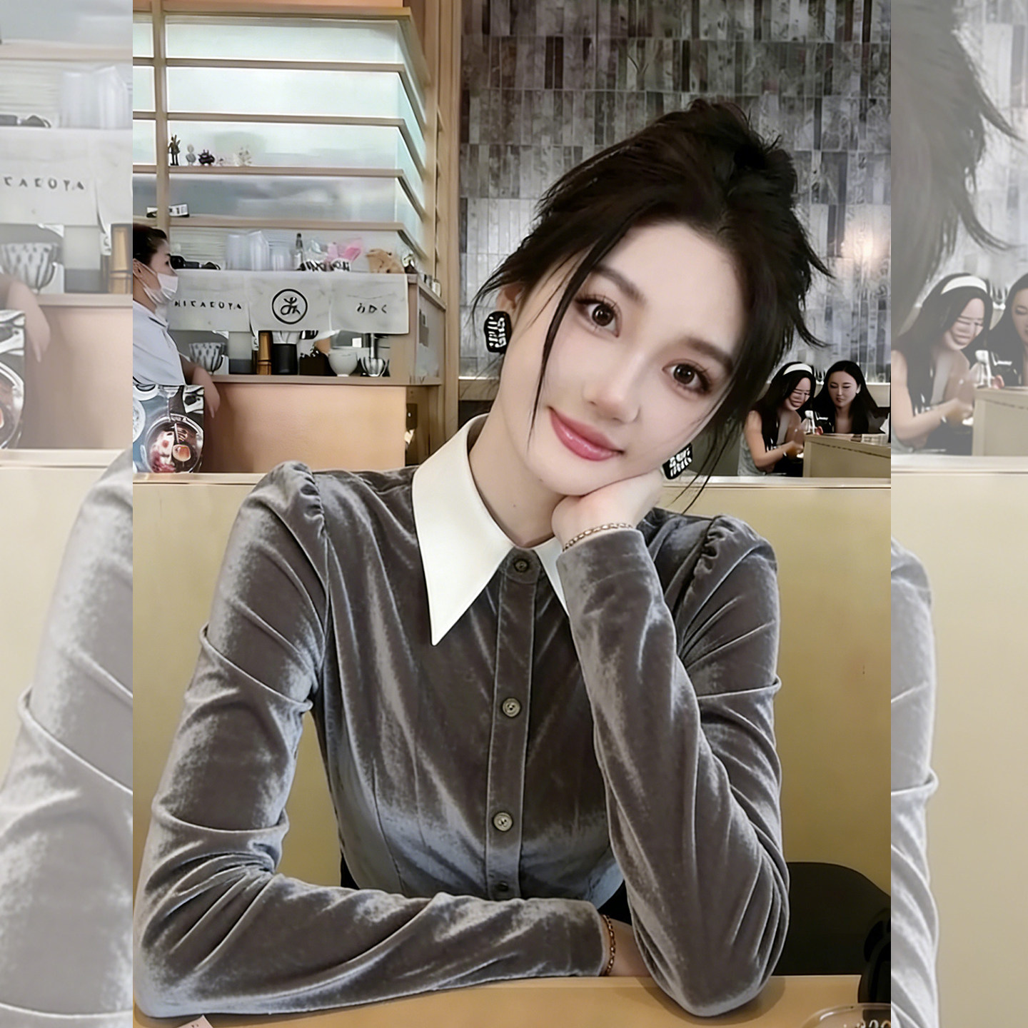 冷调优雅~撞色翻领衬衫女款早春季新款收腰显瘦气质长袖丝绒上衣