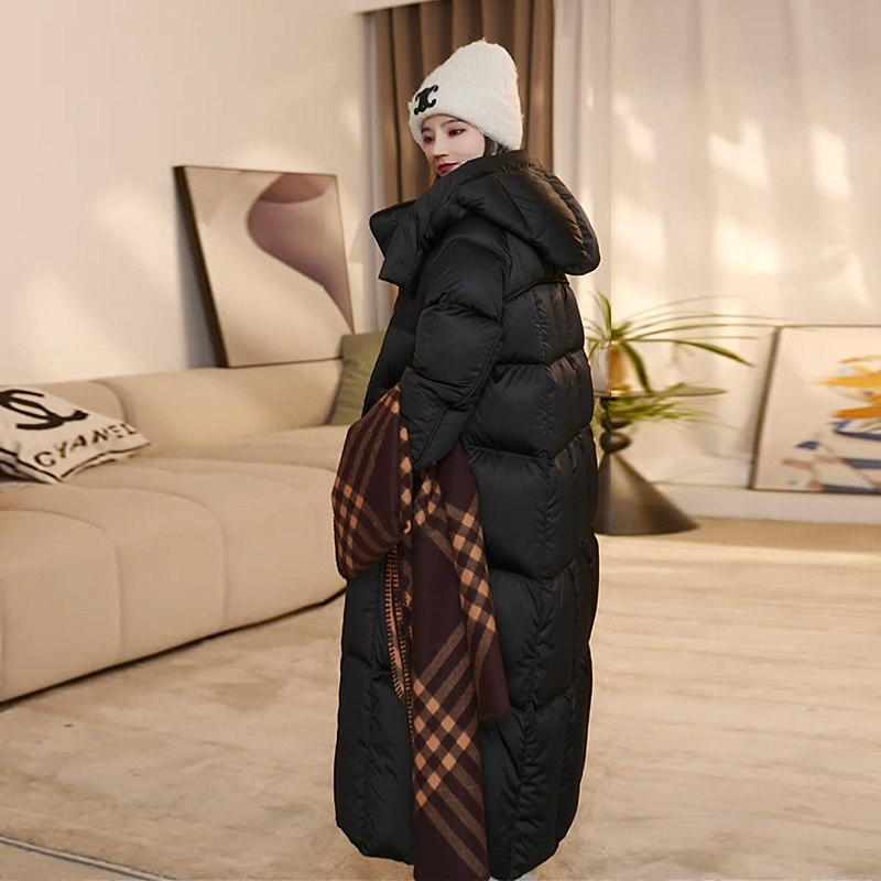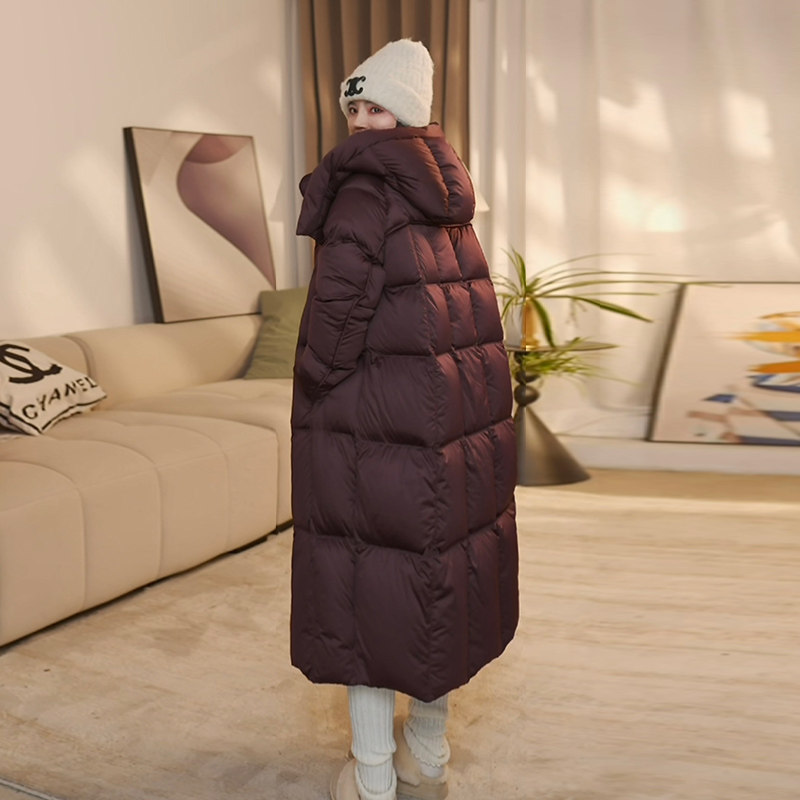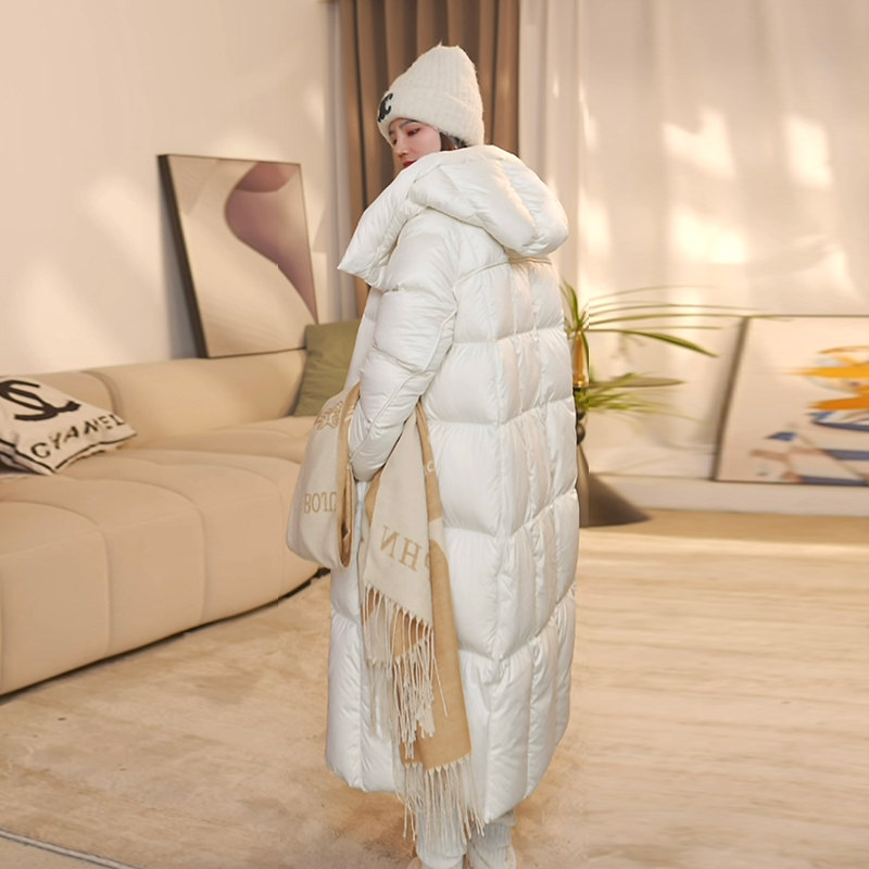 390克轻奢羽绒服冬季女款2026新款珠光缎面长款加厚95白鹅绒外套