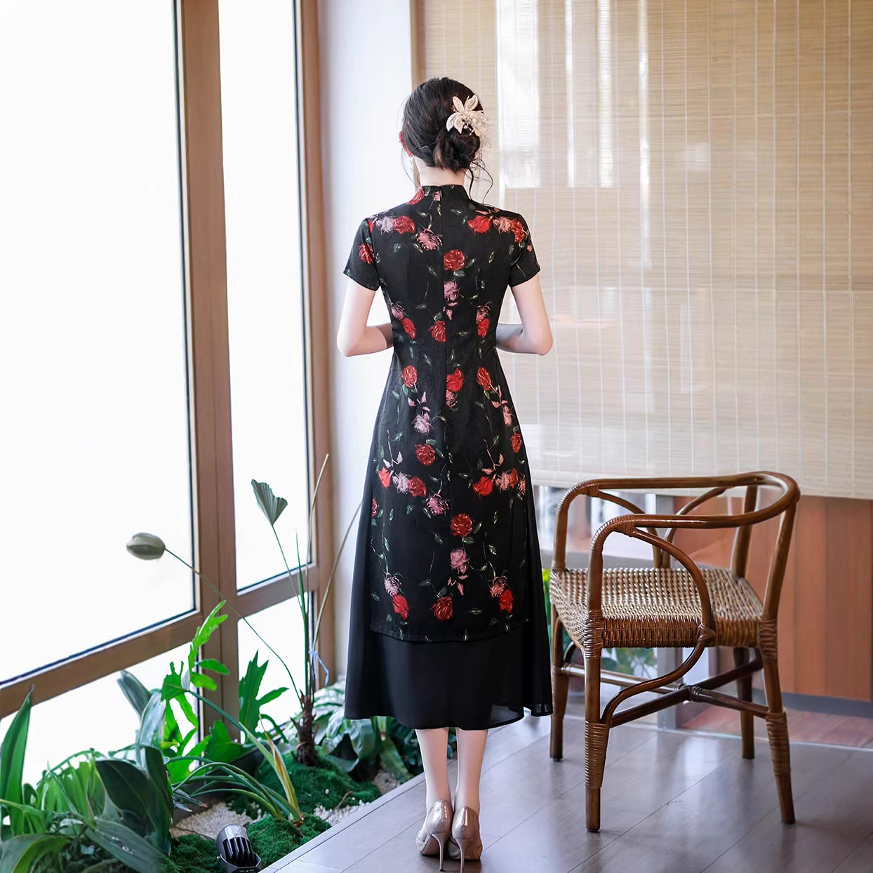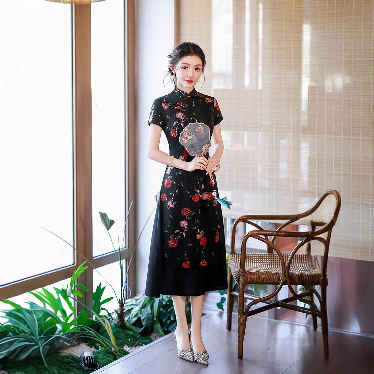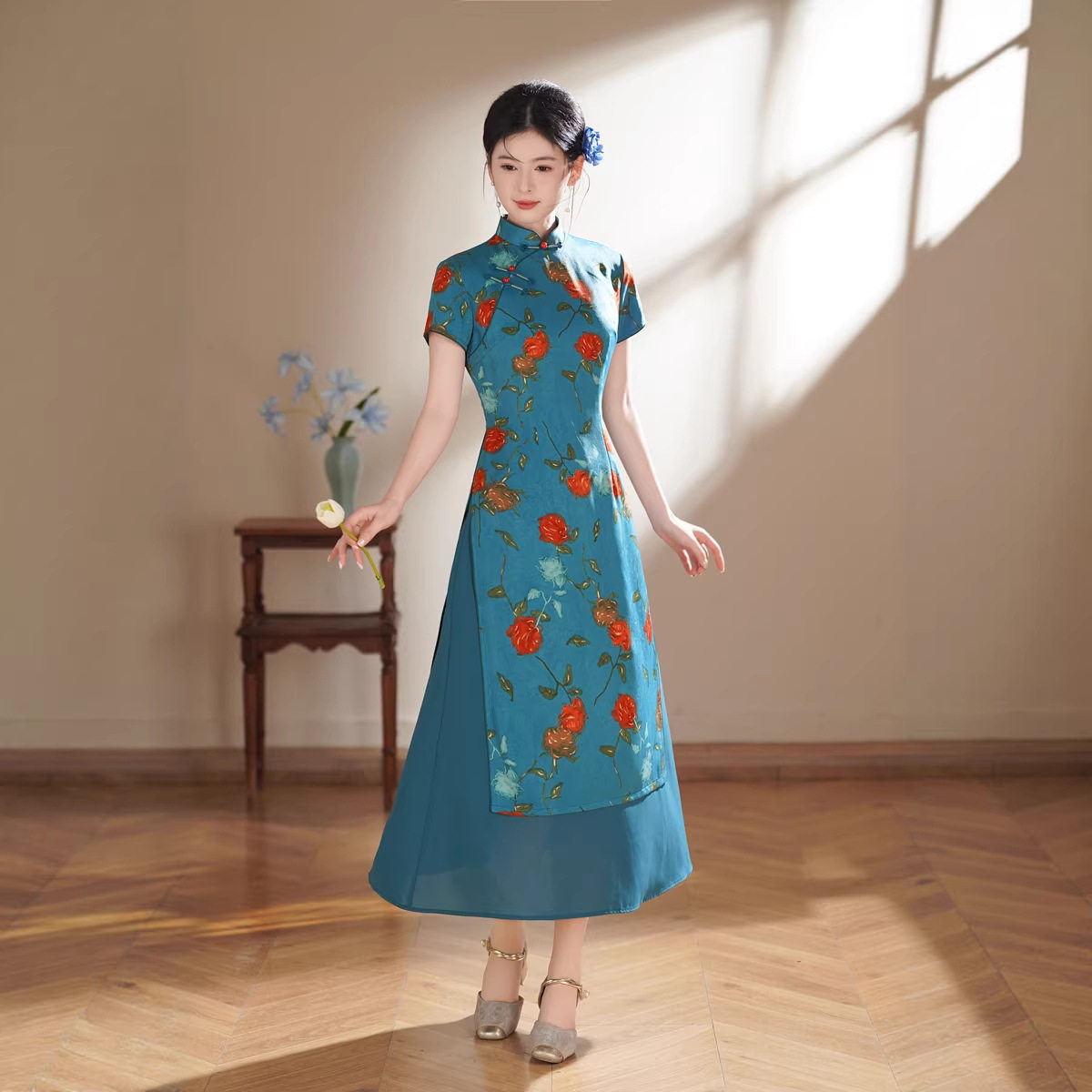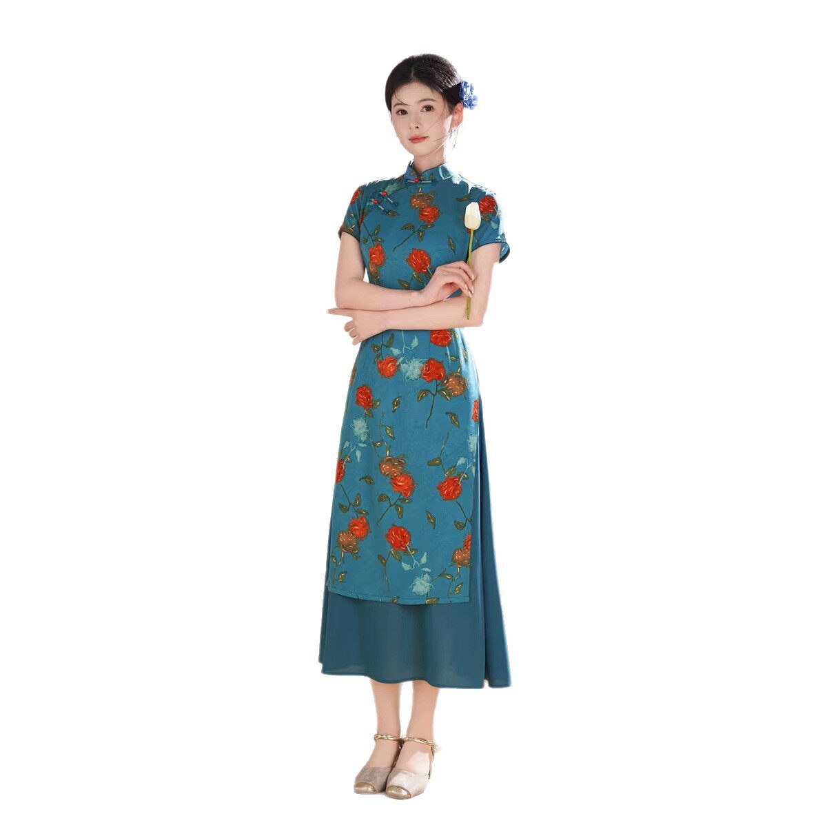 2026春夏新款中式时尚改良女士妈妈奥黛连衣裙长款气质显瘦大肚子