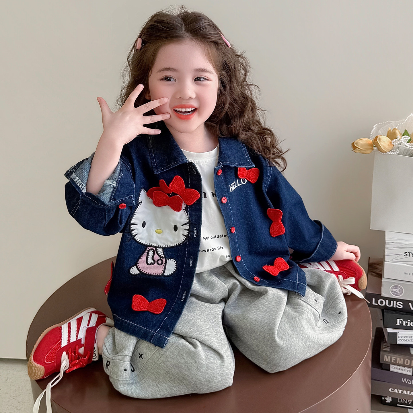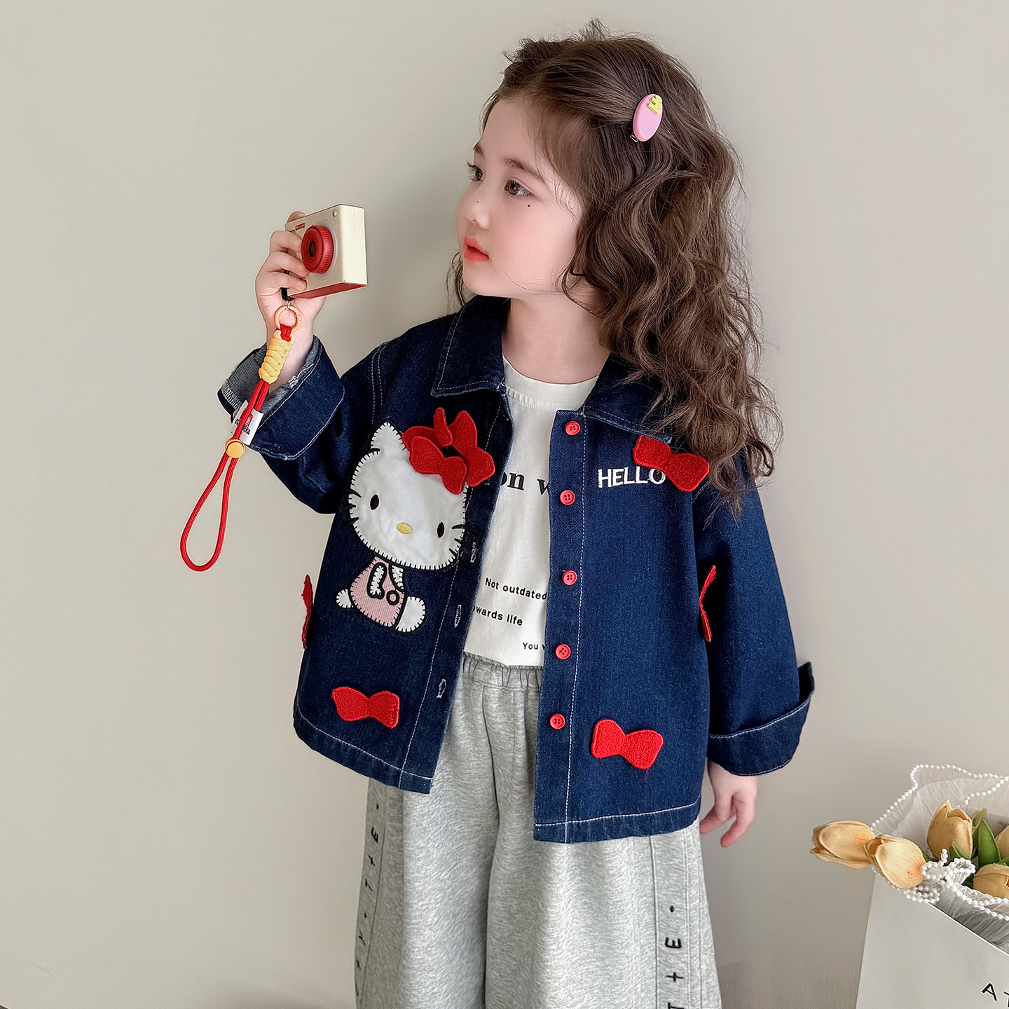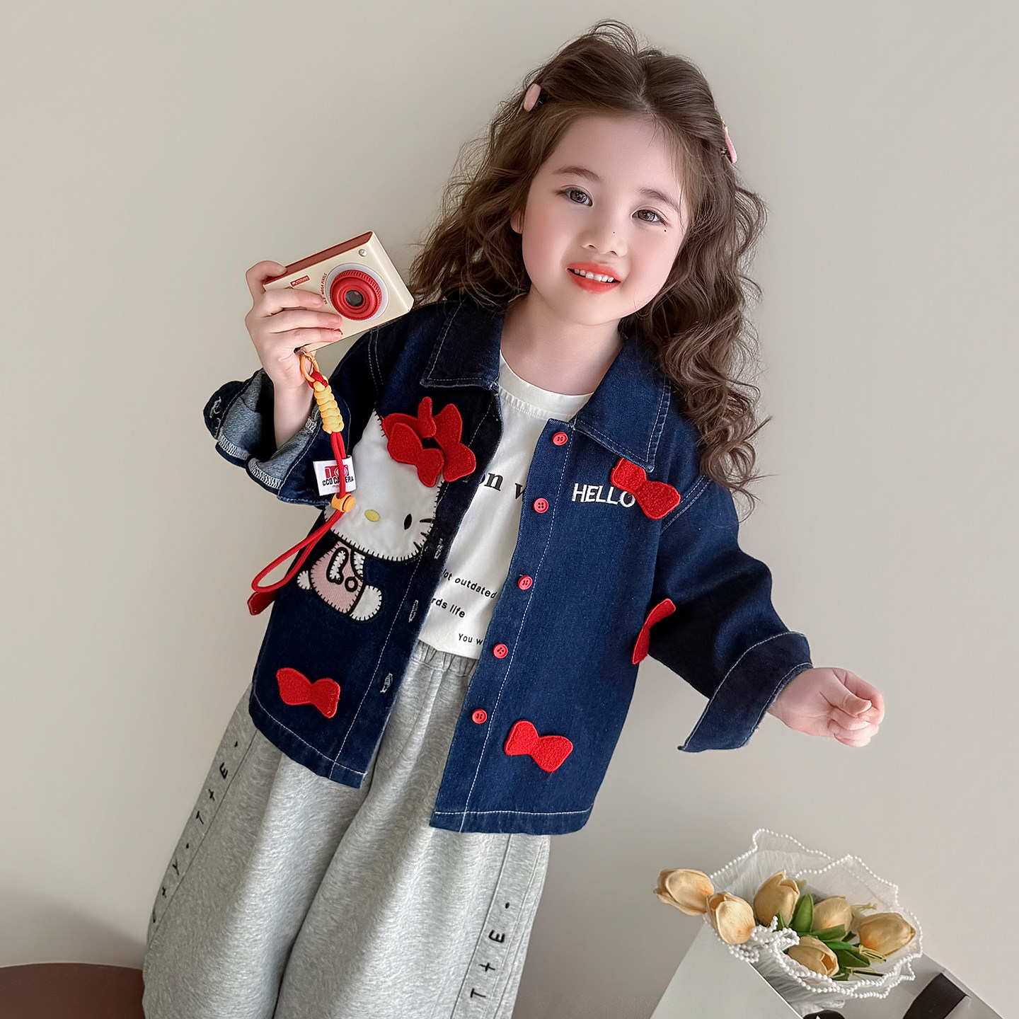 女童春秋牛仔外套2026新款儿童女宝宝春季猫咪早春装上衣夹克春款