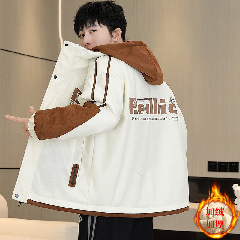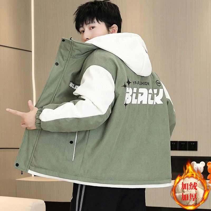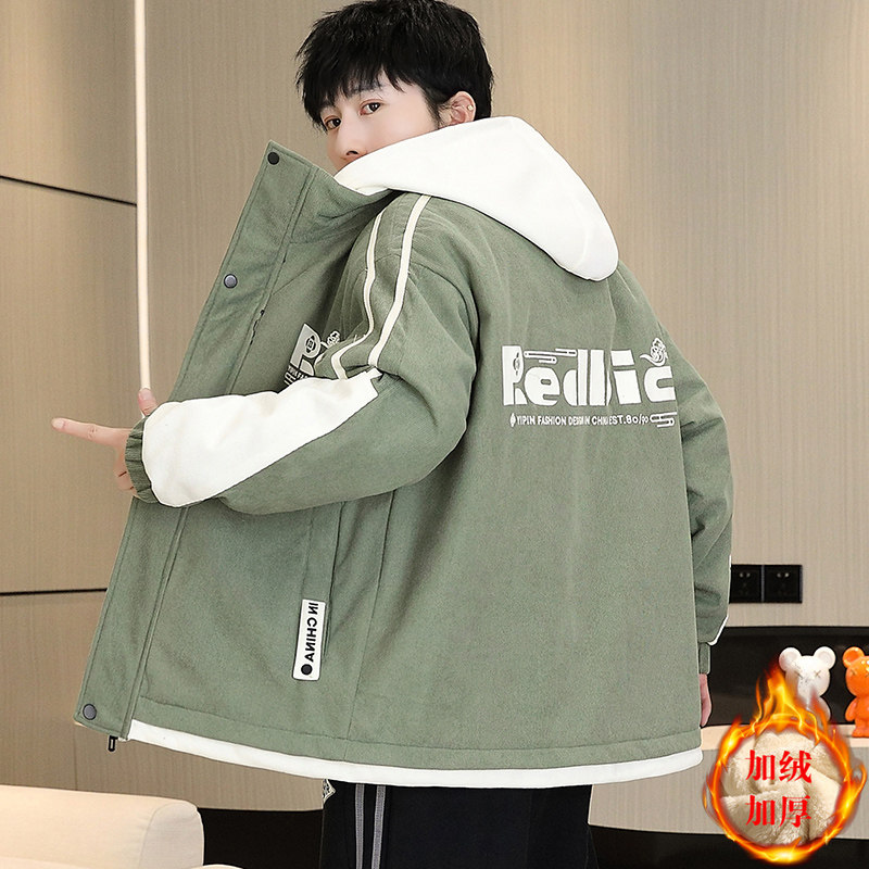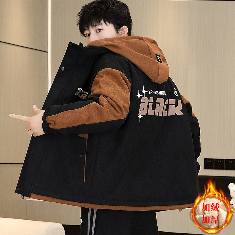 秋冬款加绒外套男孩初中高中学生加厚保暖棉服青少年大童冬装夹克
