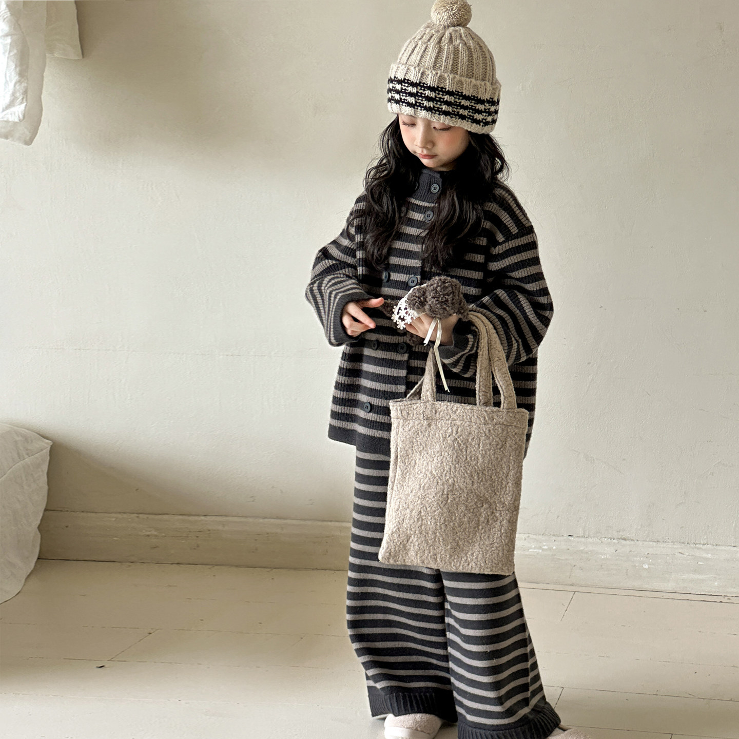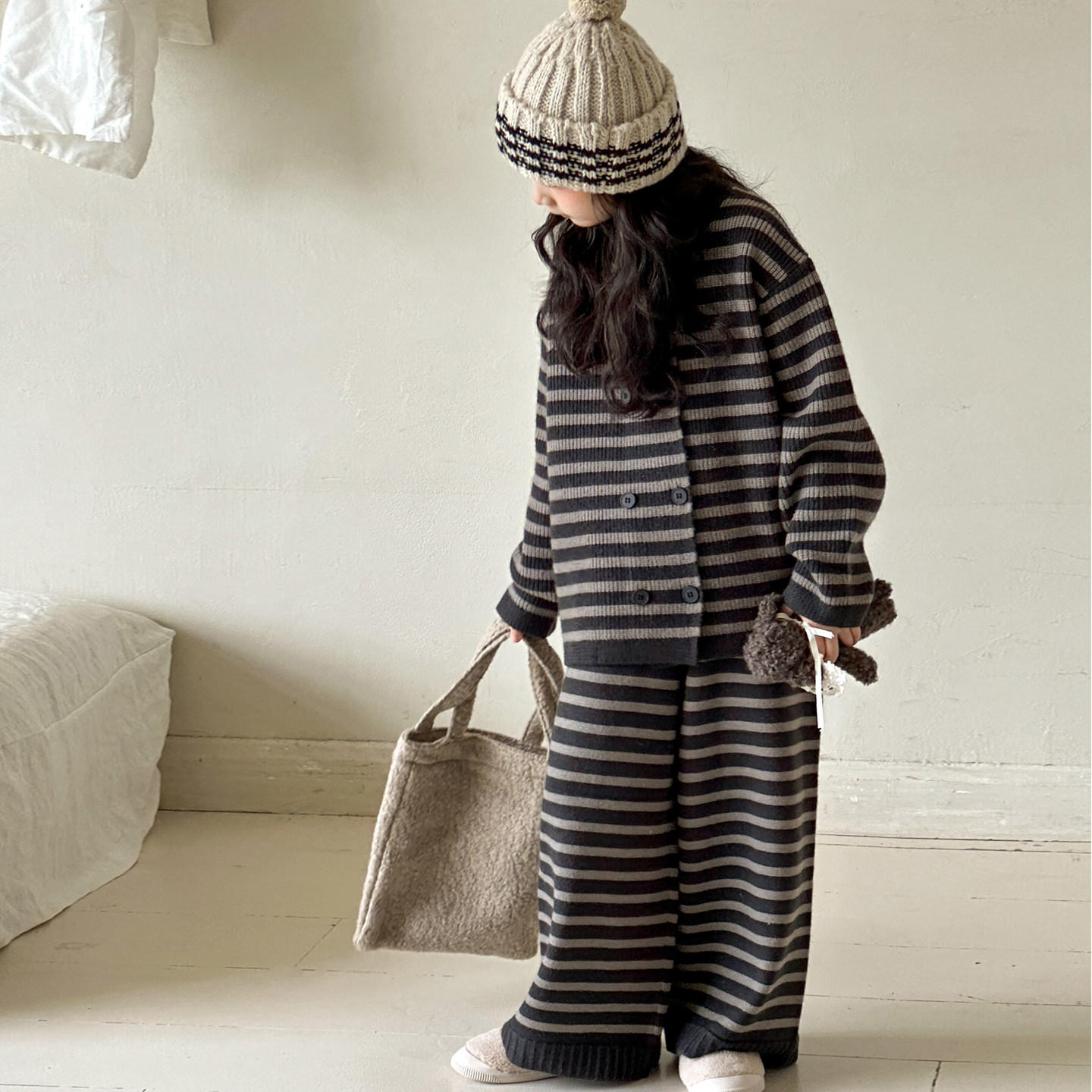 女童针织套装2026新款初中生儿童开衫外套春秋款女大童时尚阔腿裤