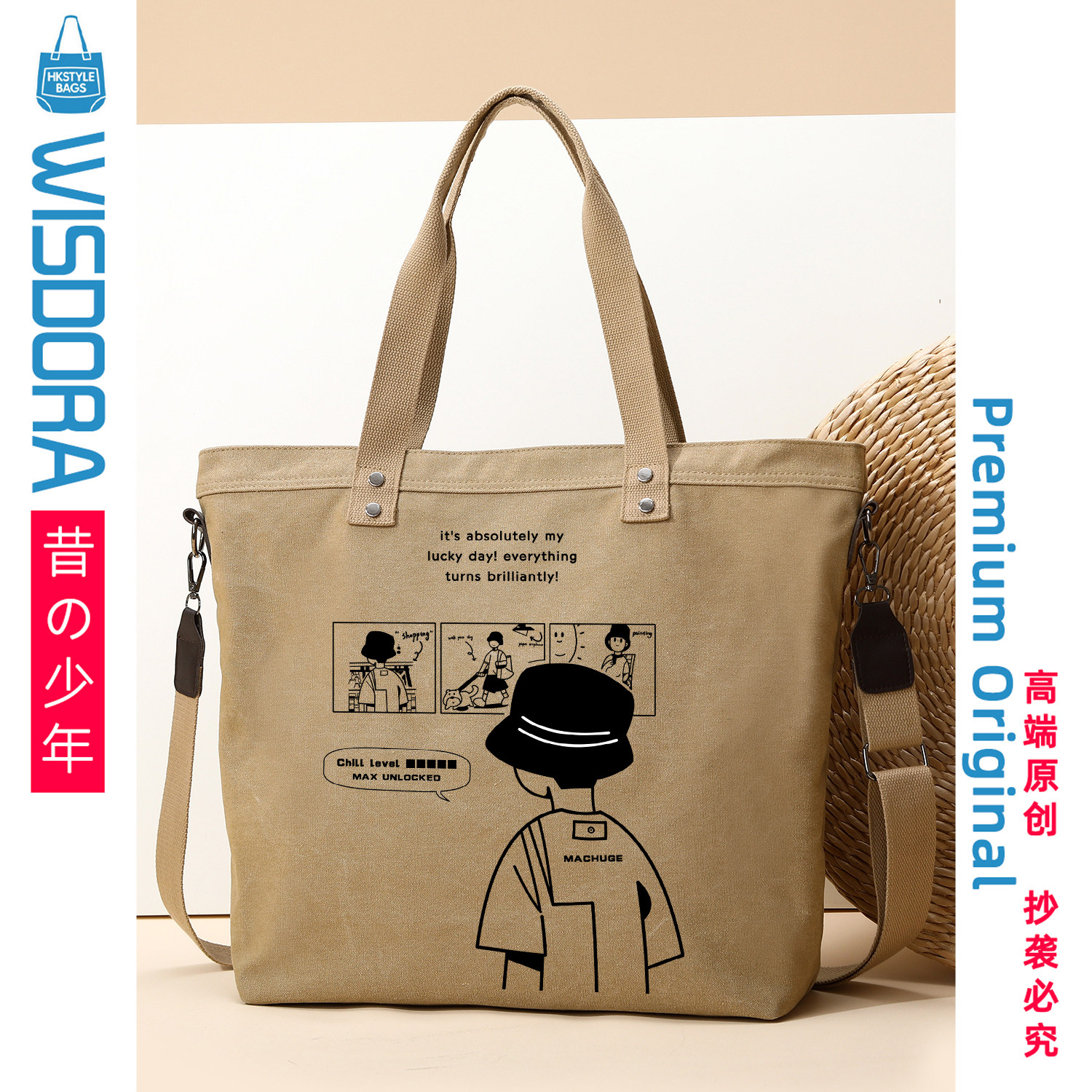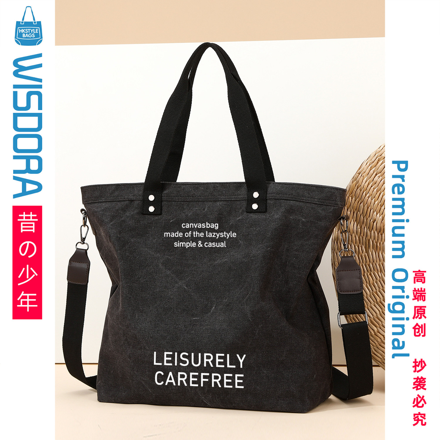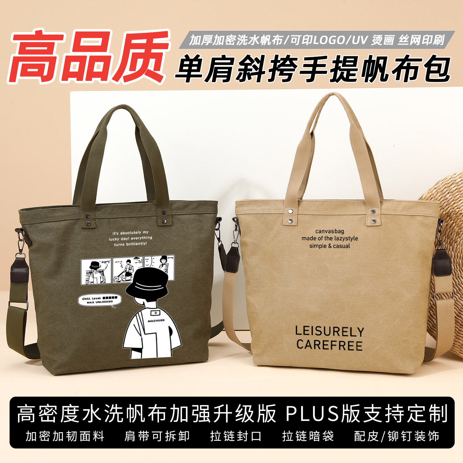 斜挎手提包纯色帆布男大容量单肩男女款托特2026新款原创图案定制