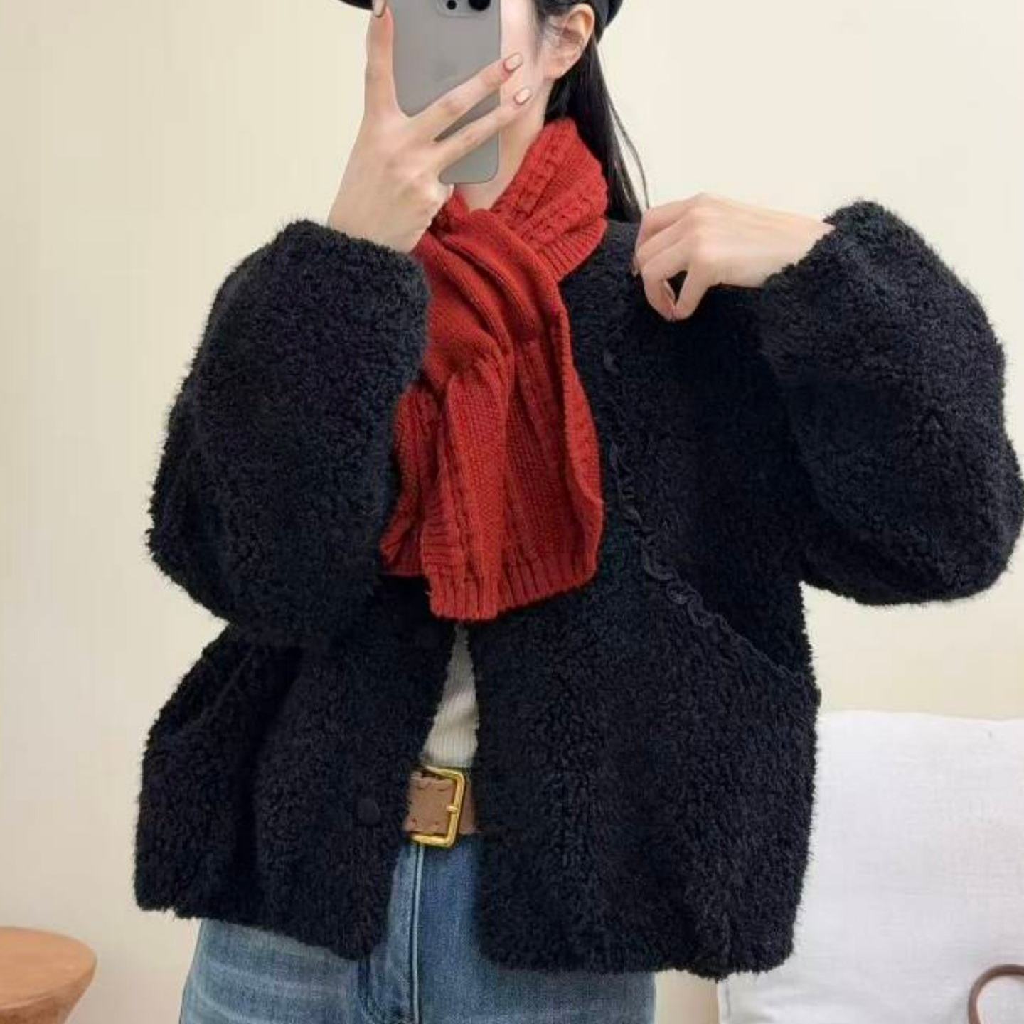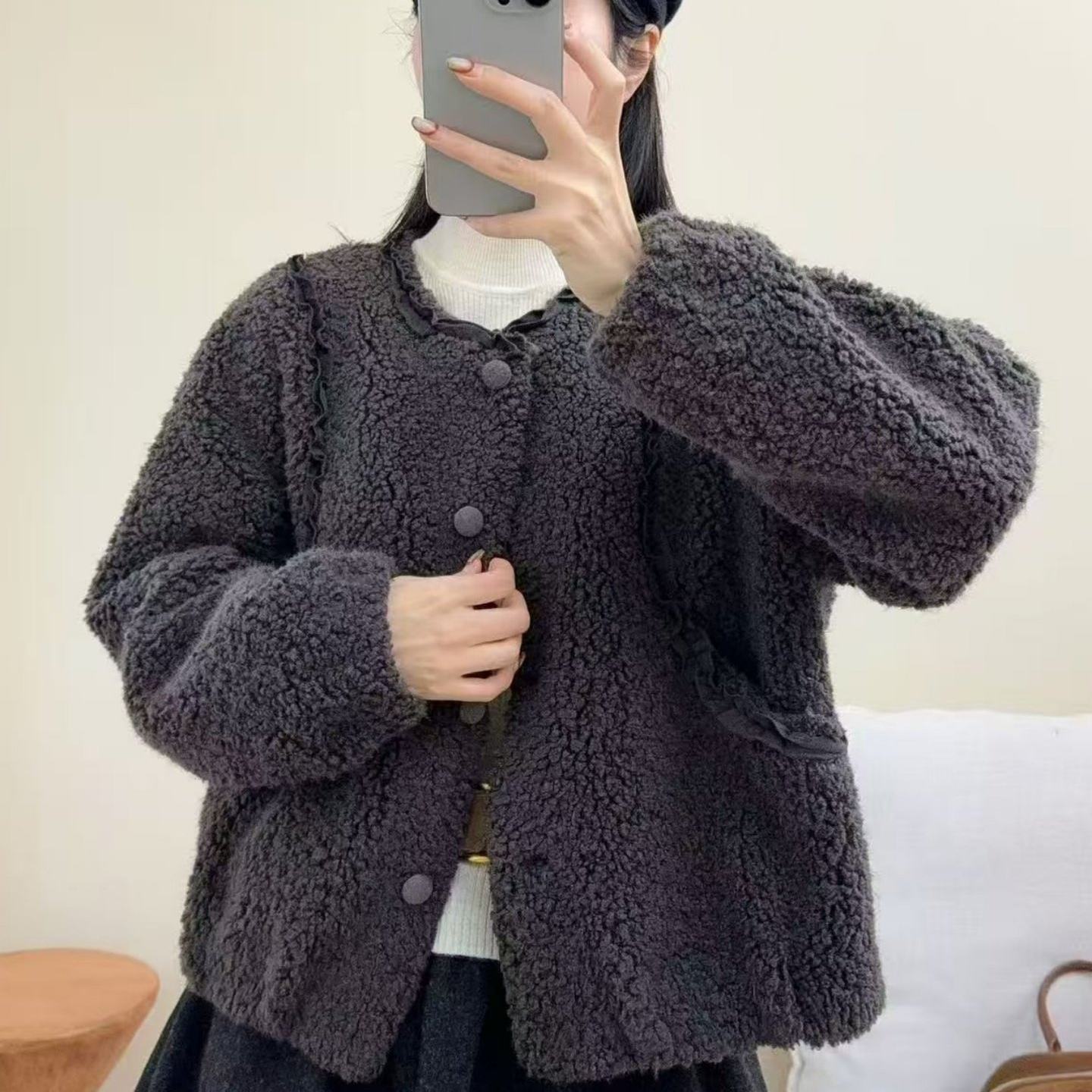 小香风短款毛毛外套女2026冬季新款设计感花边皮毛一体毛毛款外套