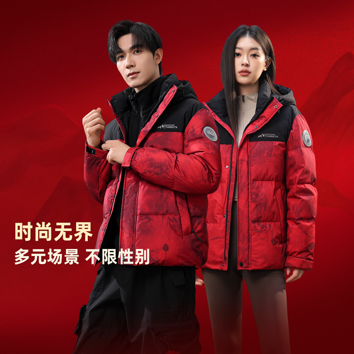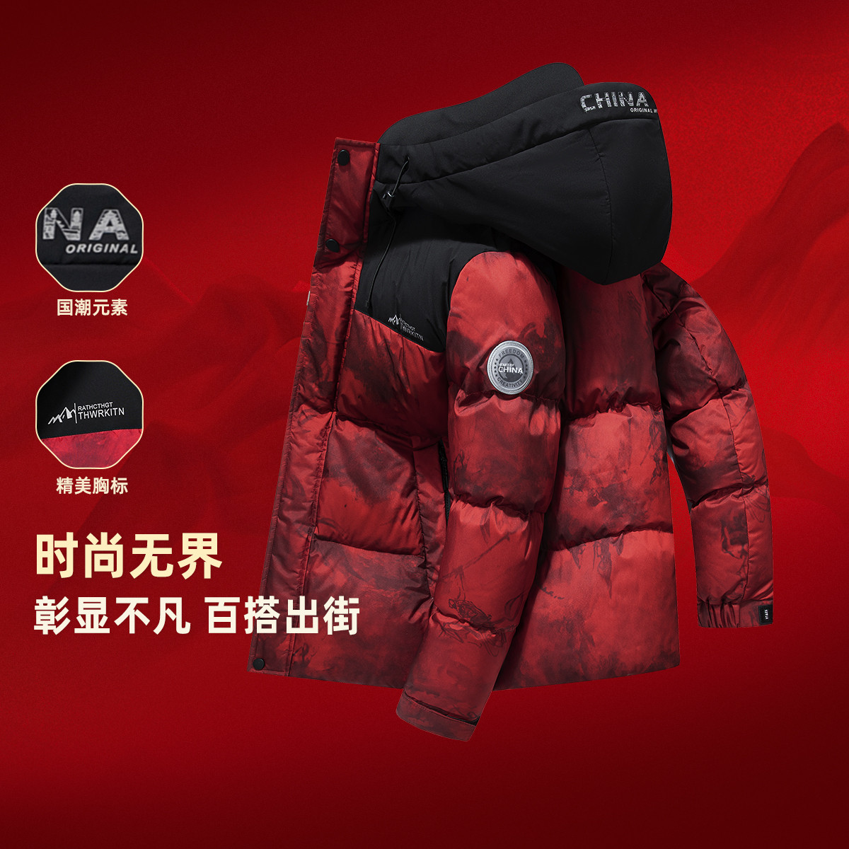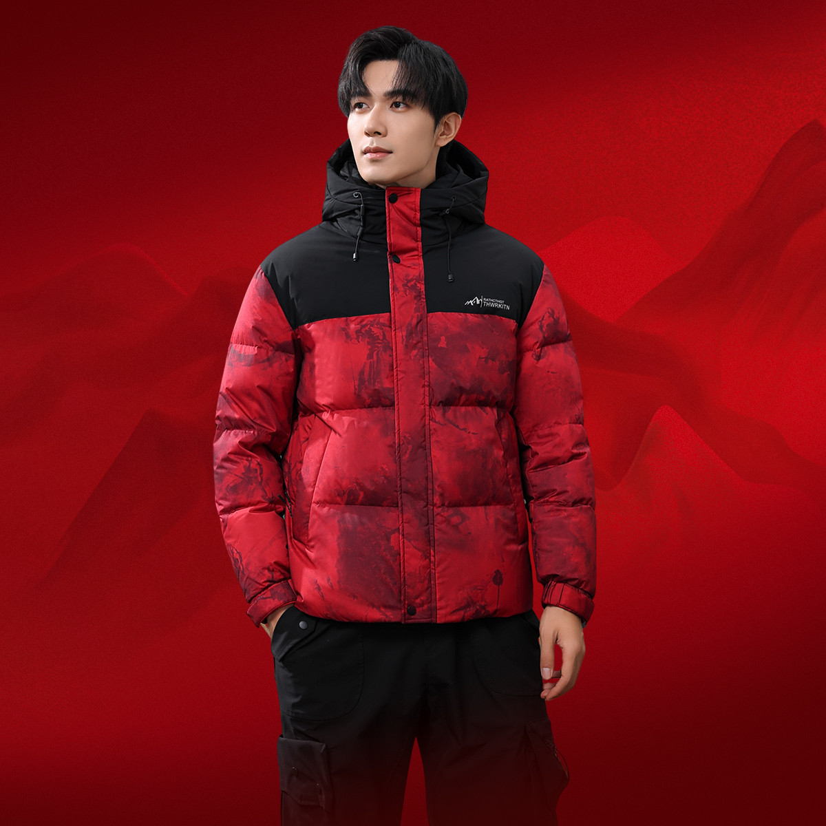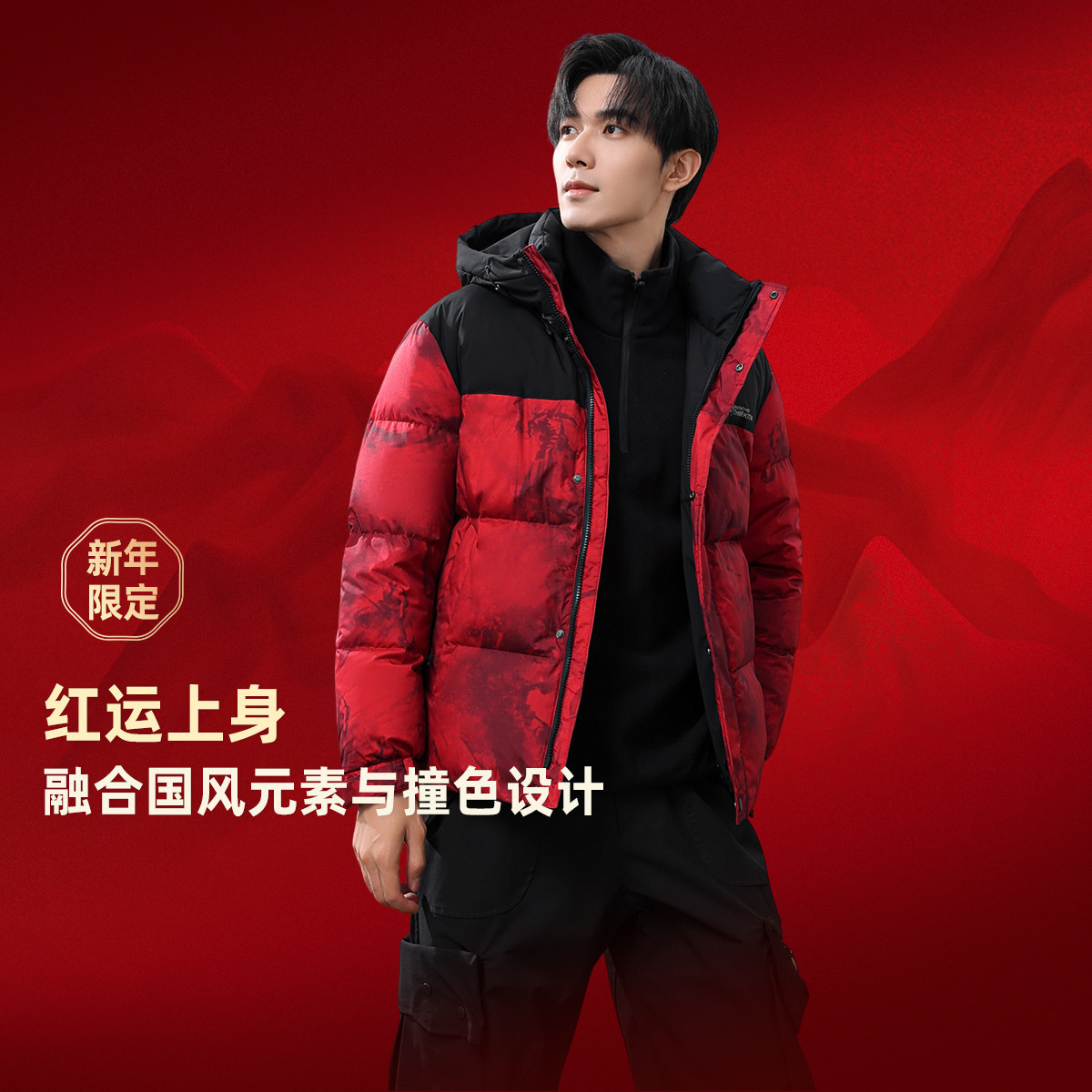 雪中飞2026春新款男士短款新年红羽绒服拼接面包服时尚加厚中国红
