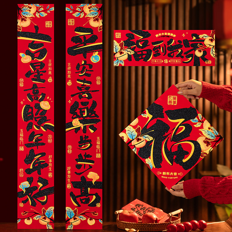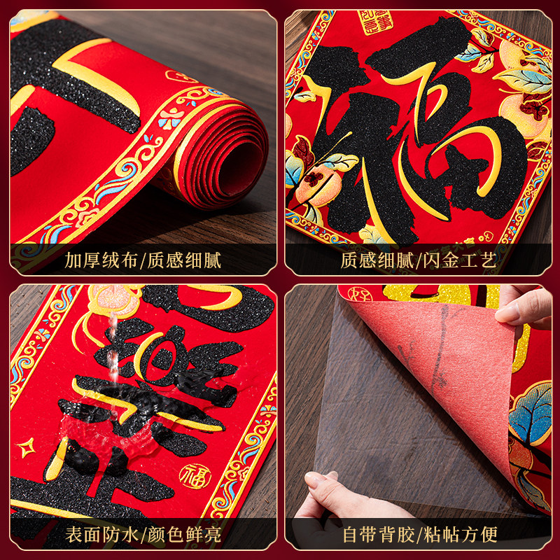 新款绒布大门春联2026年马年创意对联福字门贴农村入户门过年新年