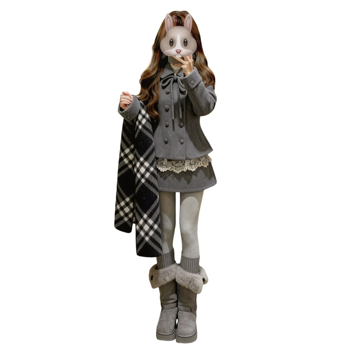 小香风灰色西装连衣裙子女秋冬季2025新款小个子千金穿搭套装短裙