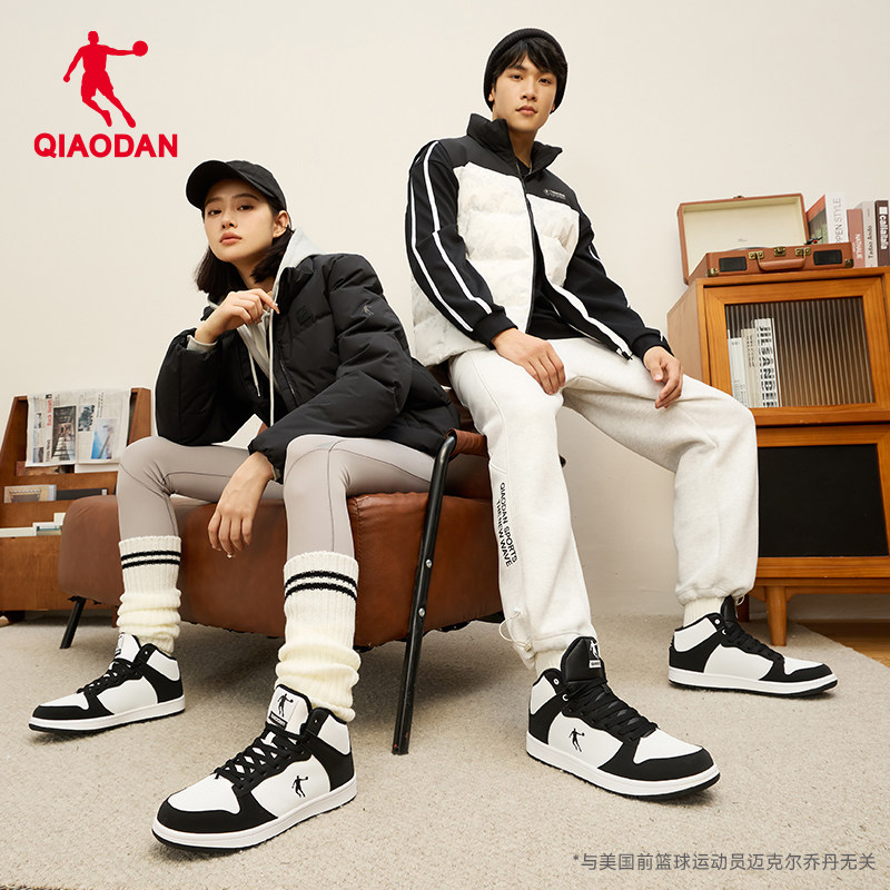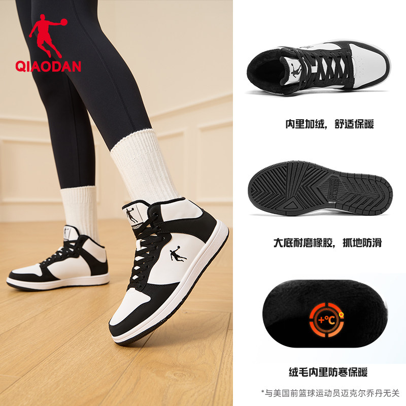 乔丹高帮加绒棉鞋平底鞋黑白女板鞋新款冬季女款休闲保暖运动防滑