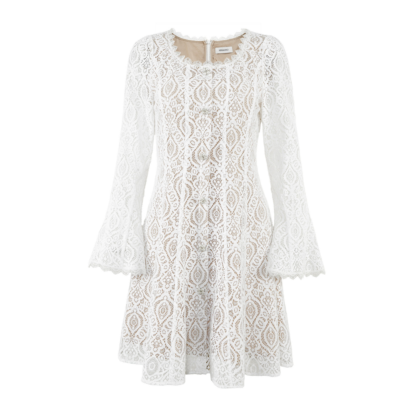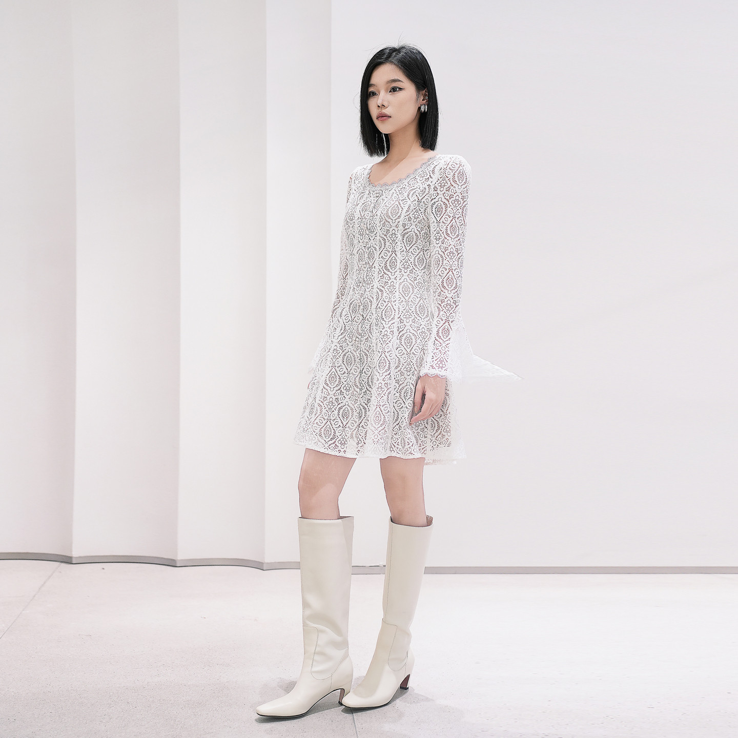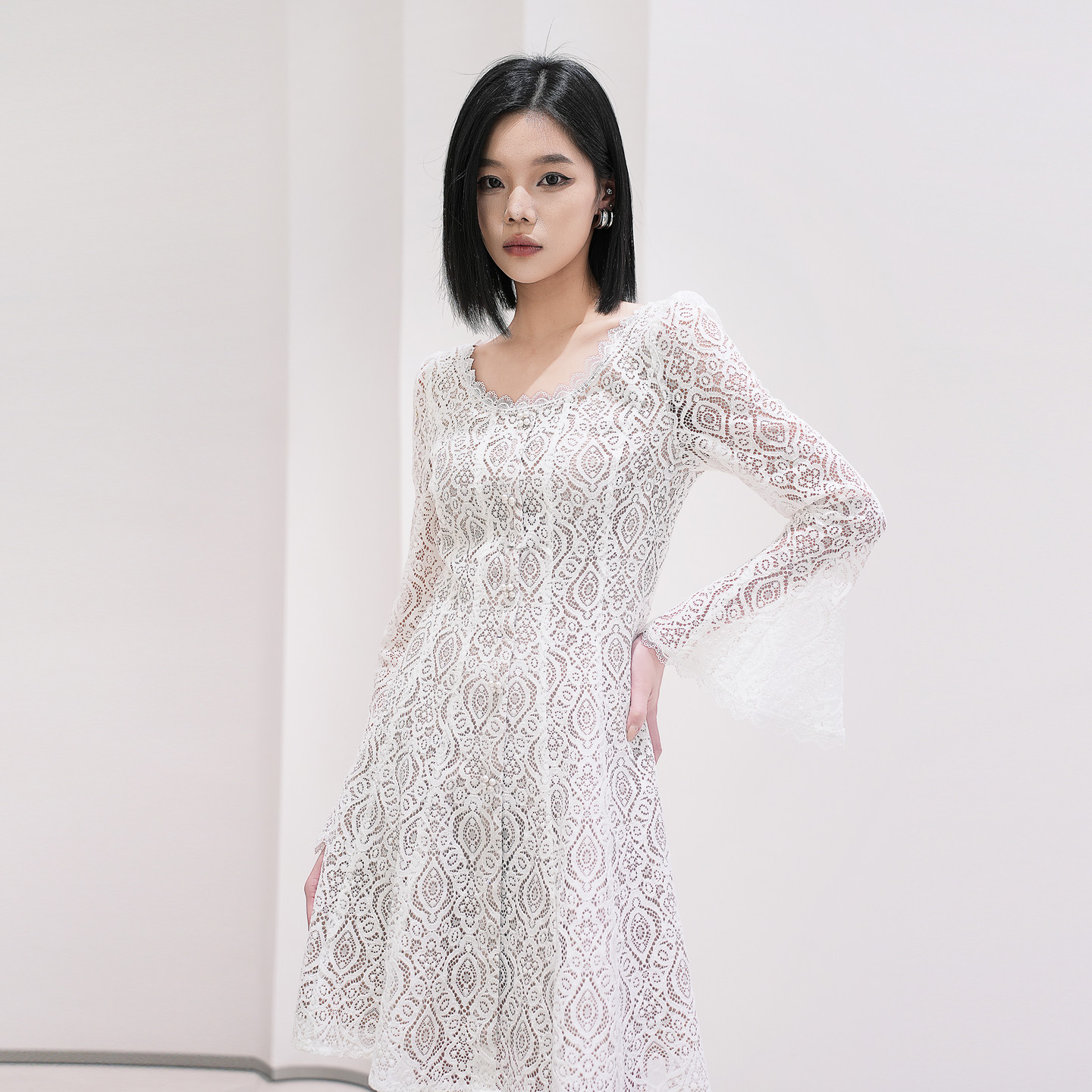 Migaino曼娅奴女装春季新款优雅轻奢高级感收腰蕾丝长袖连衣裙
