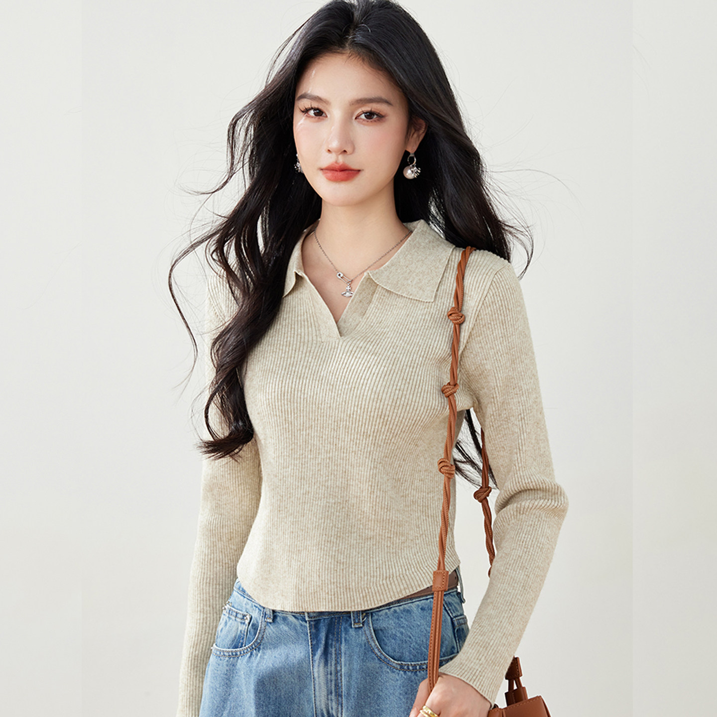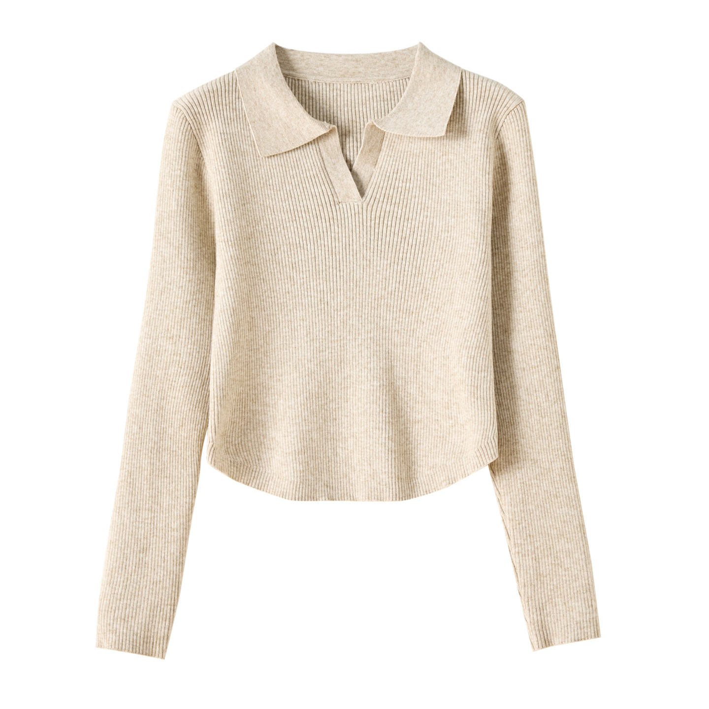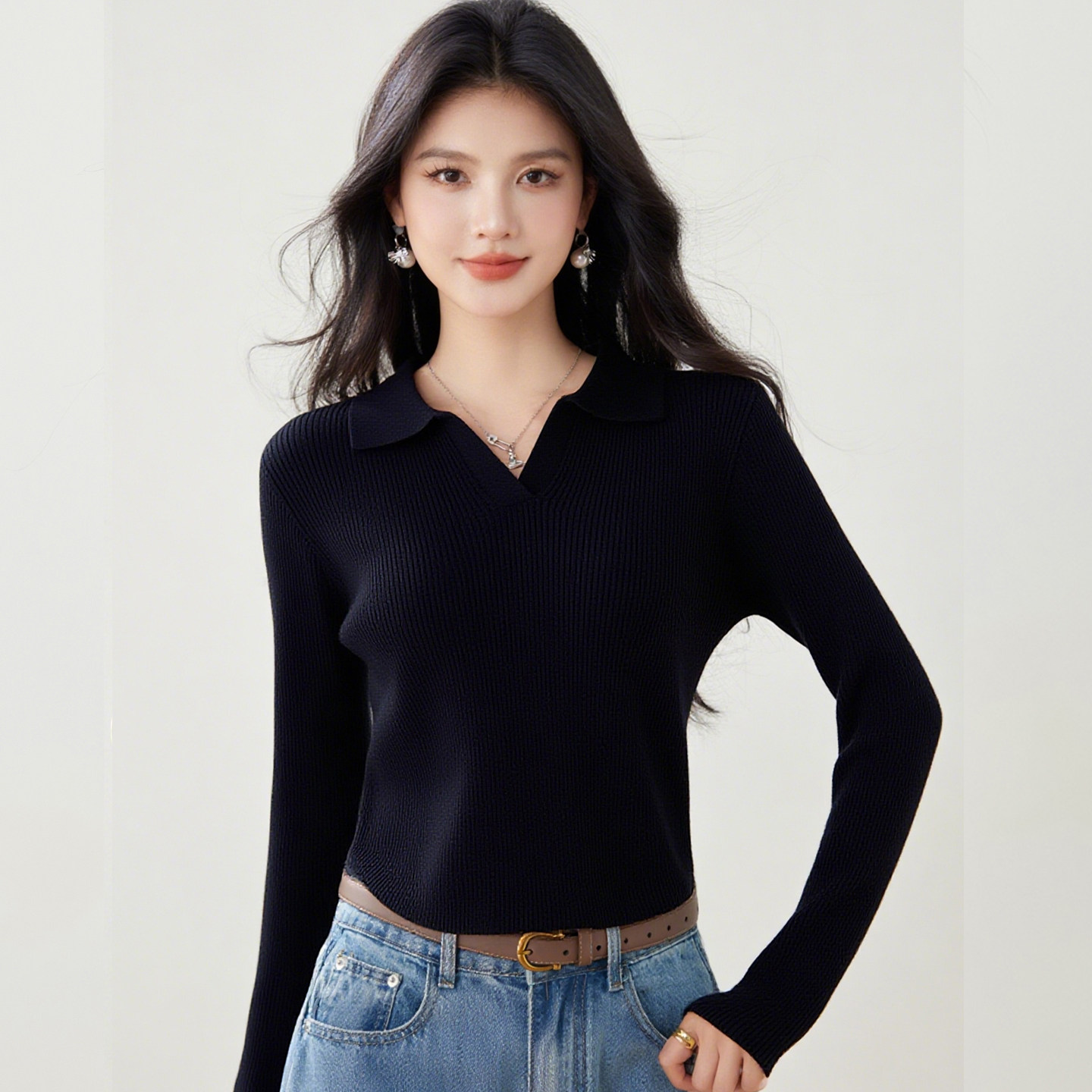 翻领短款套头毛衣女2026春季新款内搭打底衫小个子针织衫气质上衣