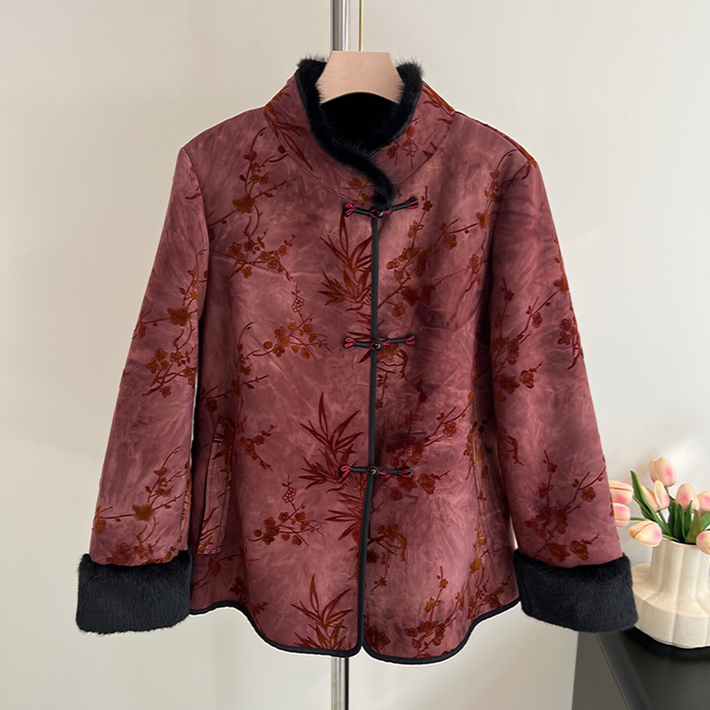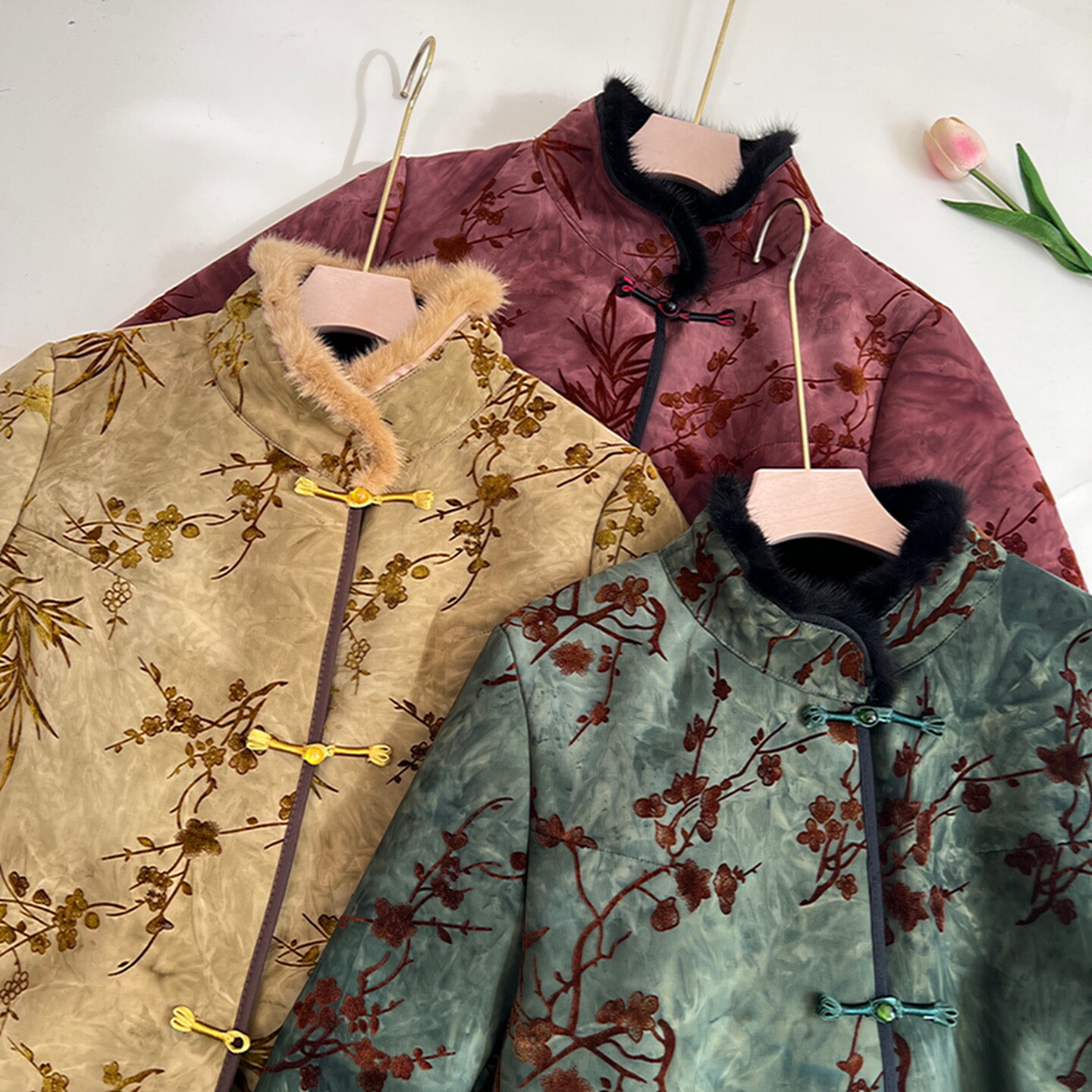 国风奶奶冬装仿皮草加绒保暖外套女新款中老年妈妈装皮毛一体大衣