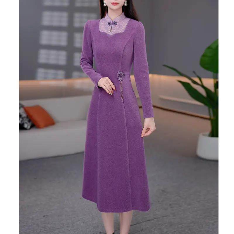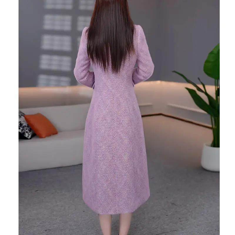 轻奢高级感紫色粗花呢长款大衣+连衣裙女收腰显瘦气质两件套