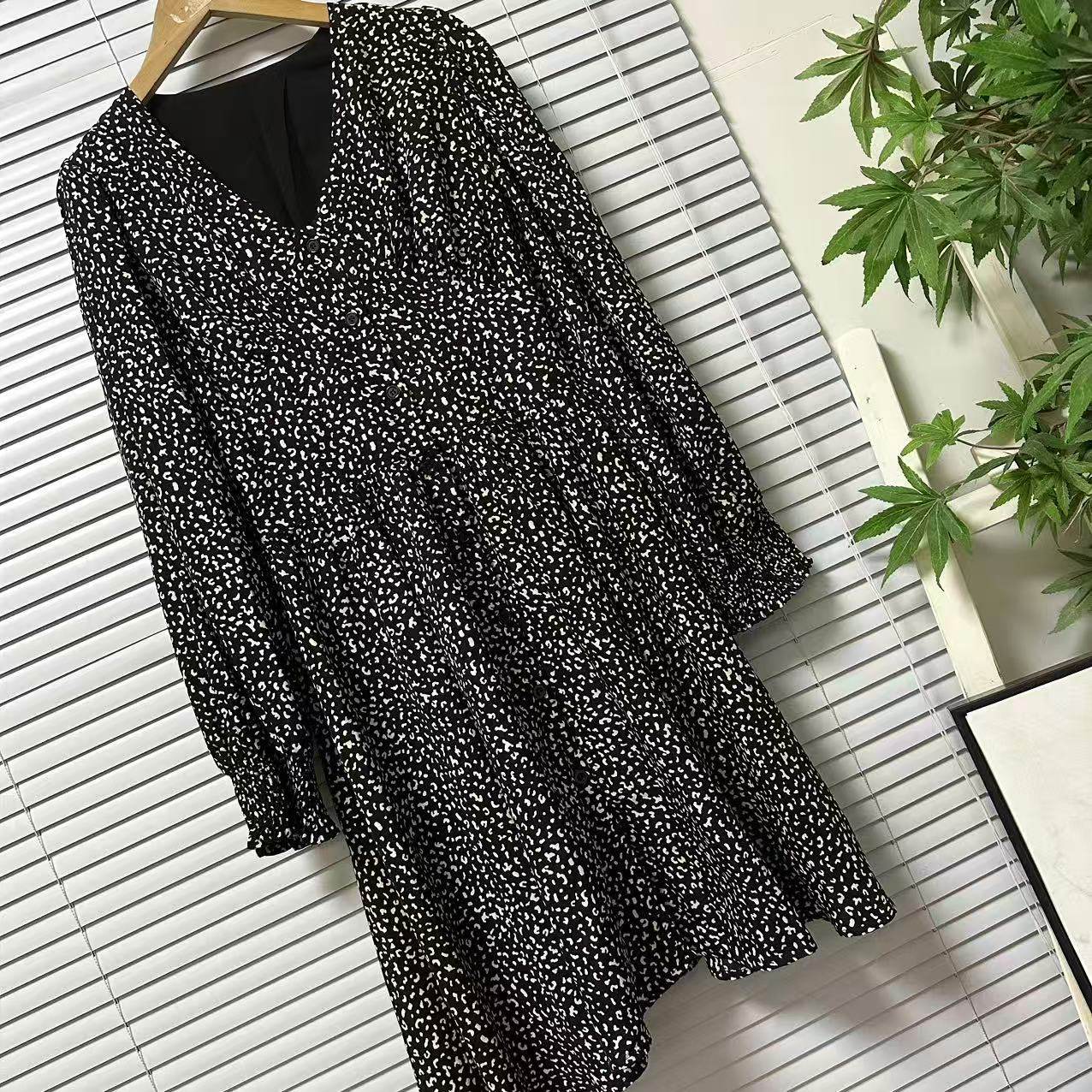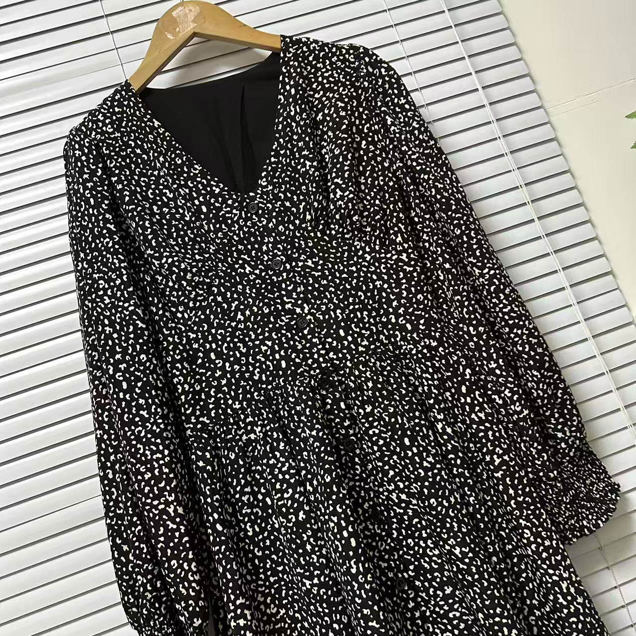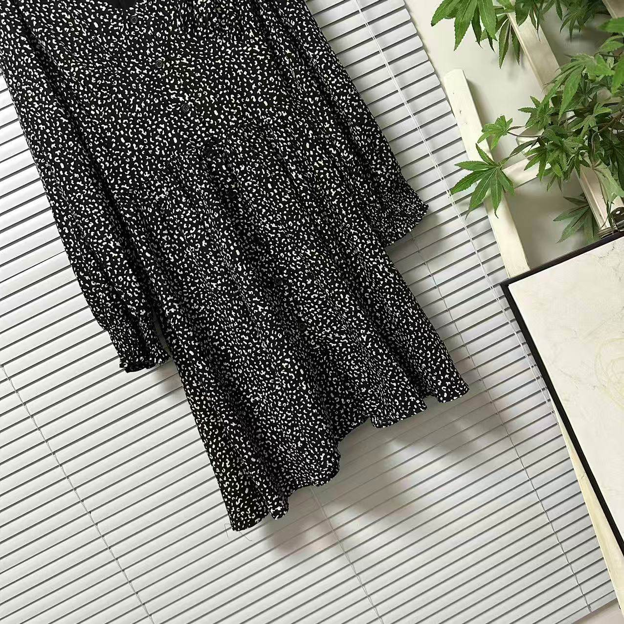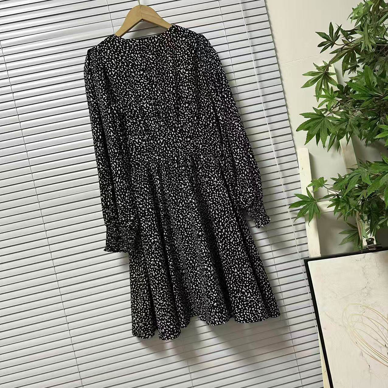 0901-51外贸单时尚轻奢高级感棉布印花连衣裙收腰显瘦中长款裙子