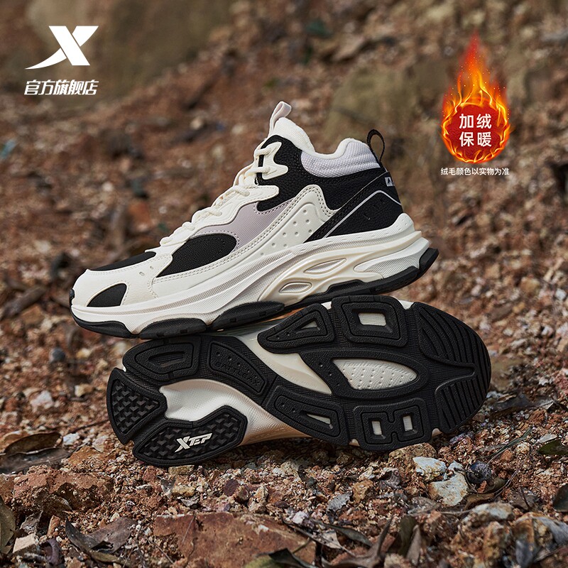 特步战斧大棉鞋女冬季加绒保暖轻便户外运动休闲鞋复古老爹鞋女鞋