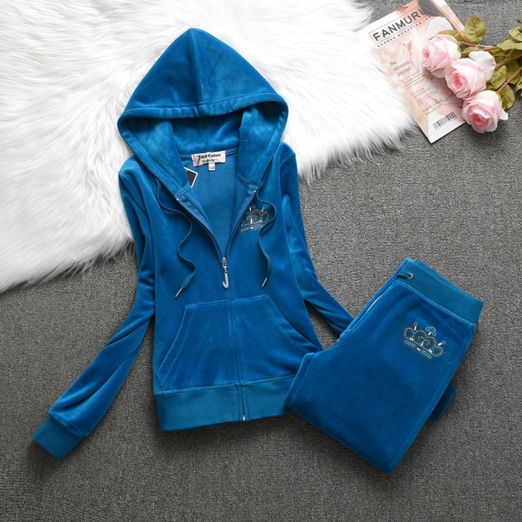 juicy coconut天鹅绒运动服套装女款卫衣连帽外套烫钻修身金丝绒