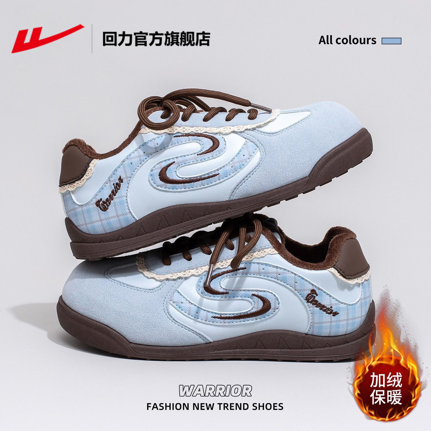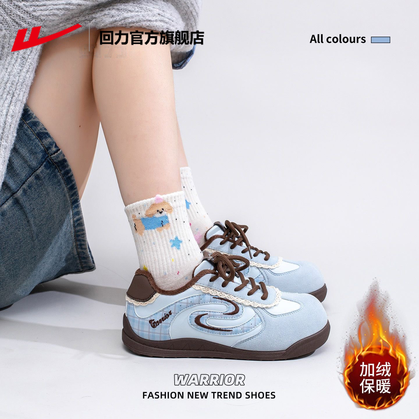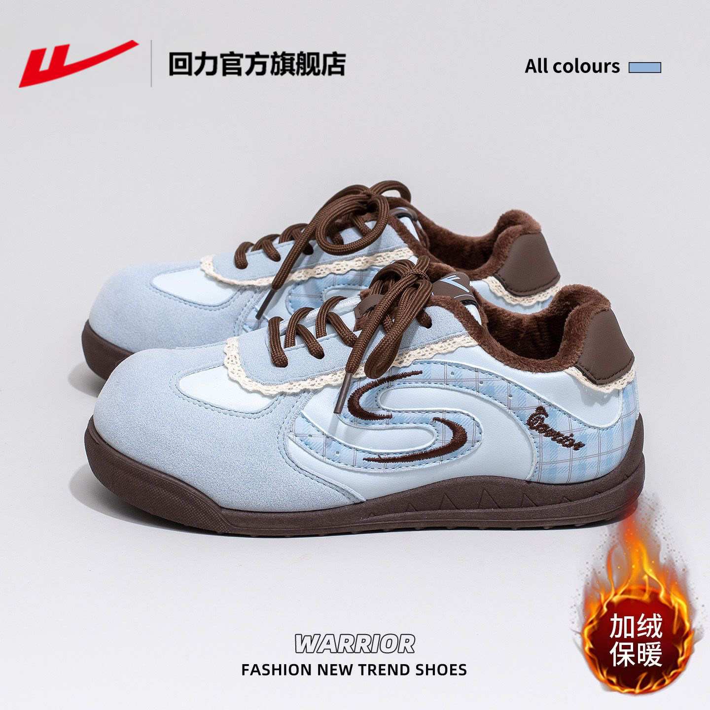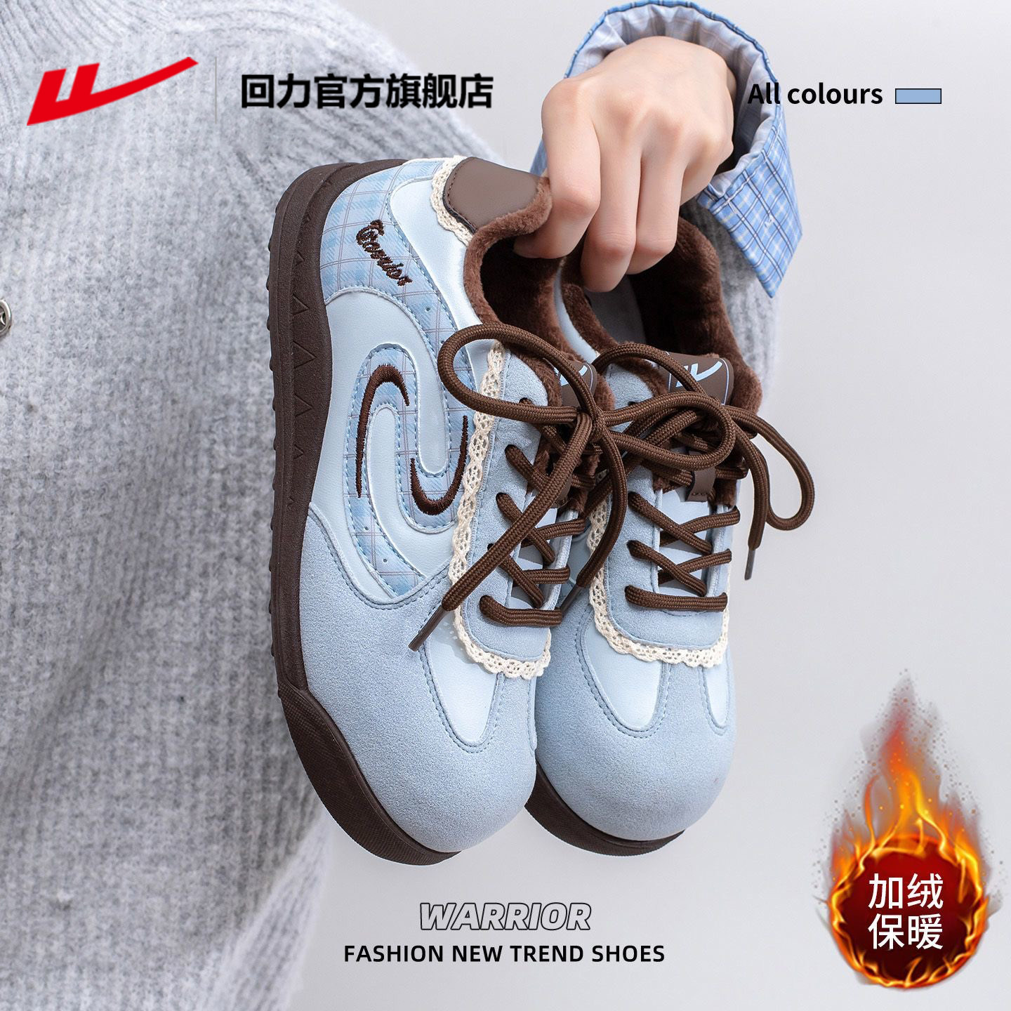 回力加绒女鞋棉鞋女冬季2025新款复古蓝棕德训鞋女厚底保暖雪地靴
