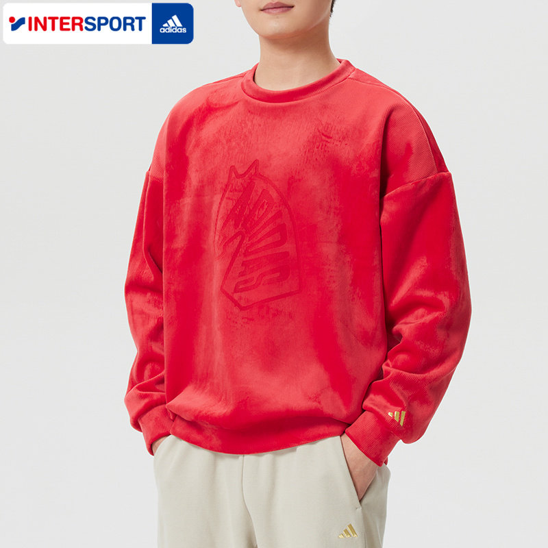 阿迪达斯官方新年款卫衣男款春新款圆领套头衫红色本命年休闲上衣