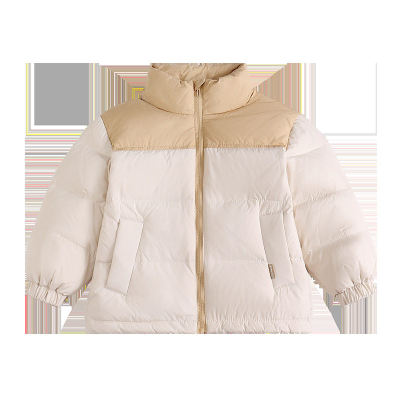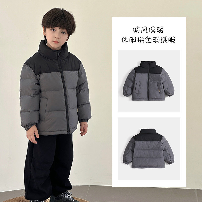 秋冬新款男女儿童小孩白鸭绒立领短款羽绒服中大童拼色外穿外套