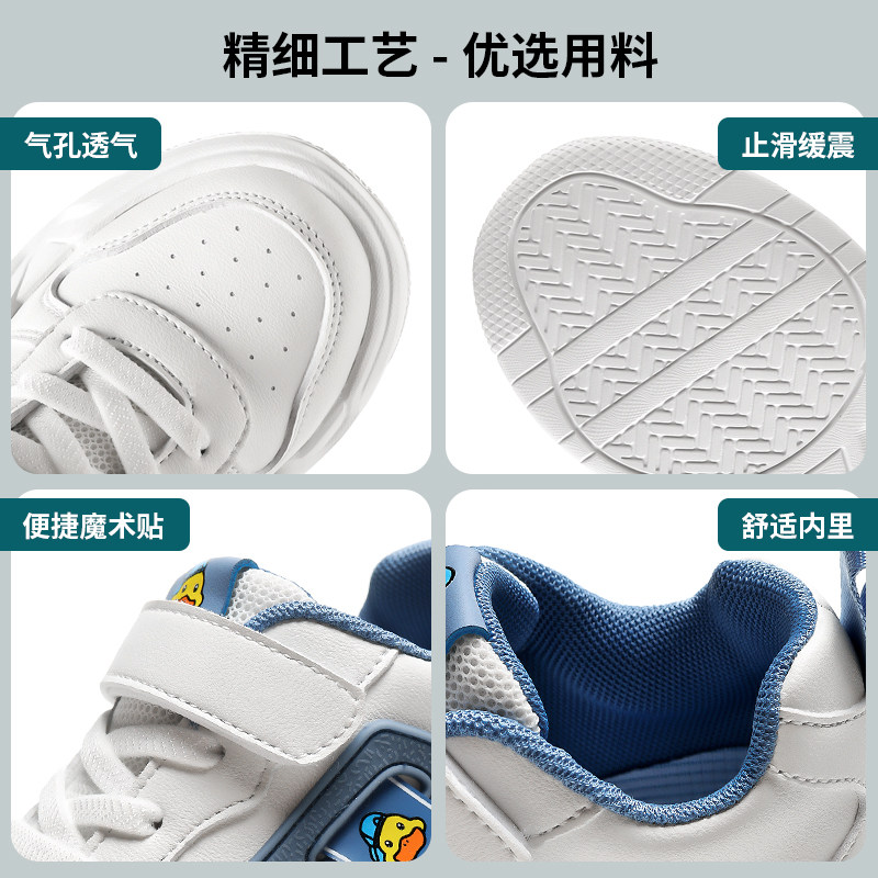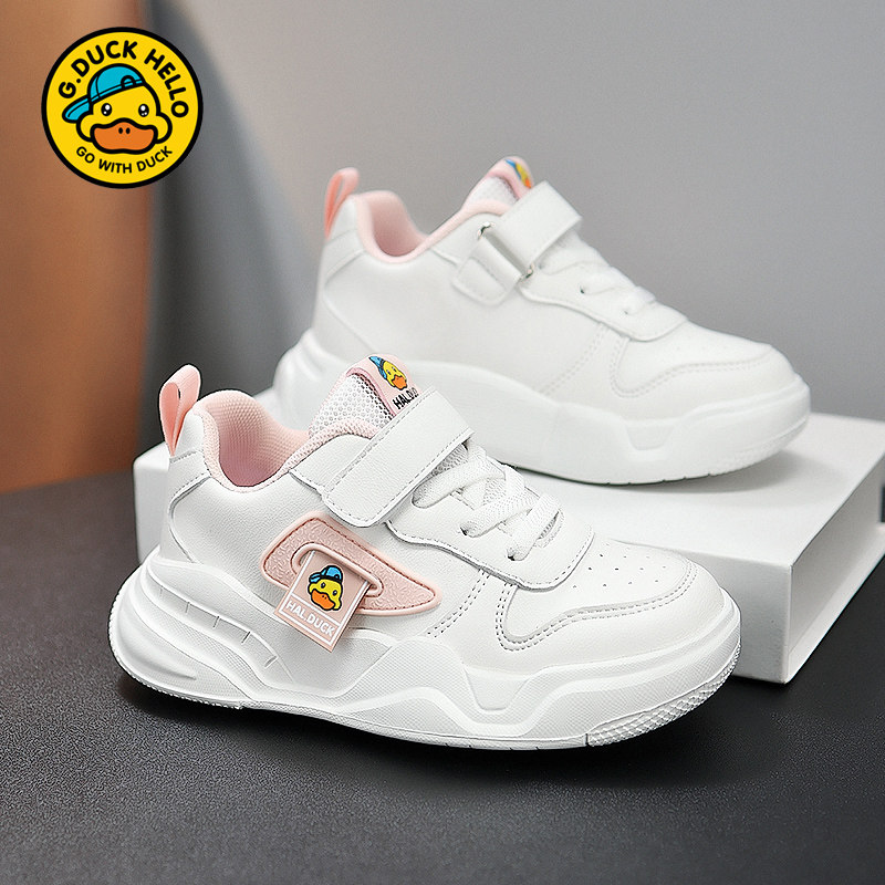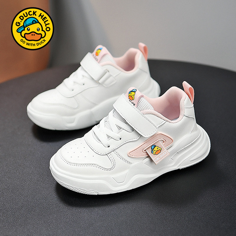 小黄鸭童鞋女童鞋子秋季2026新款皮面防水白鞋女孩儿童白色运动鞋