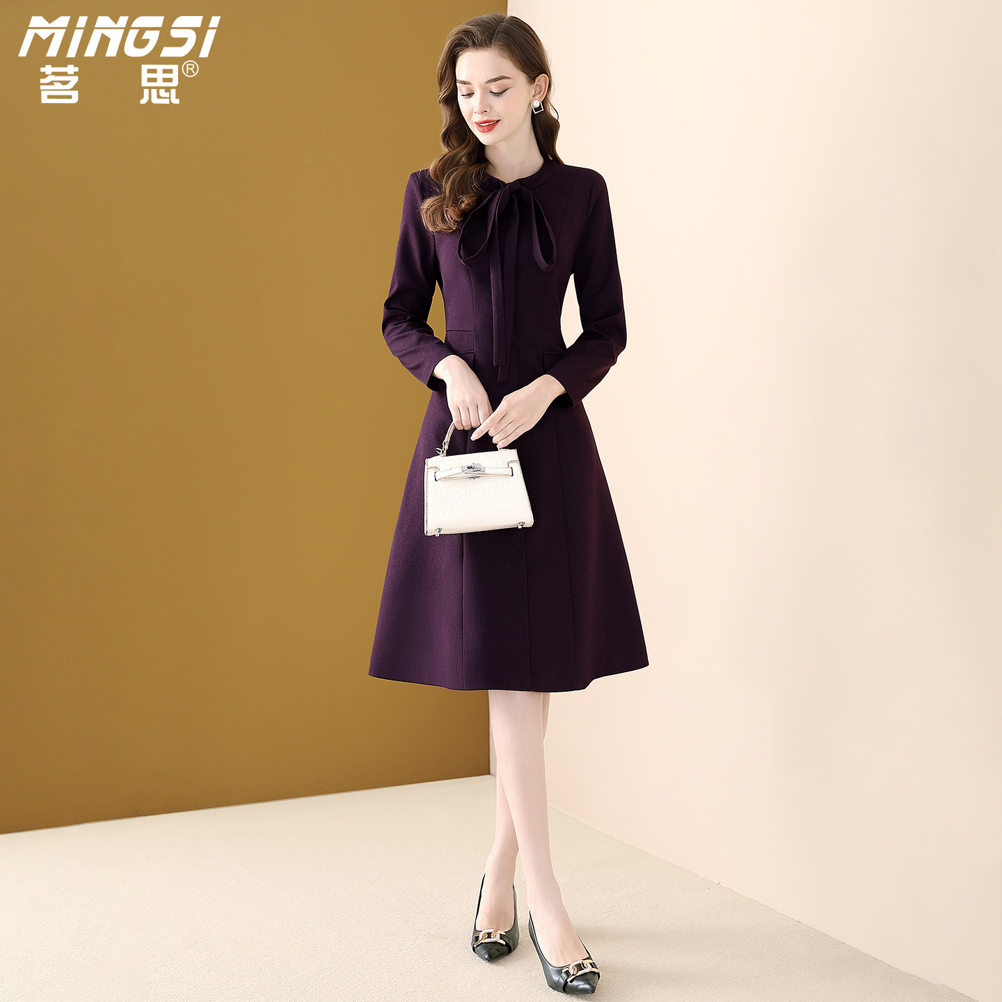 茗思轻奢高级感长袖连衣裙女2026春季新款收腰显瘦今年流行裙子