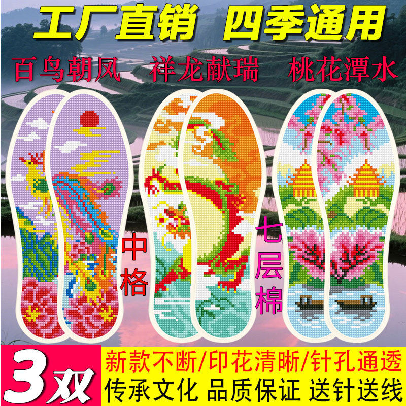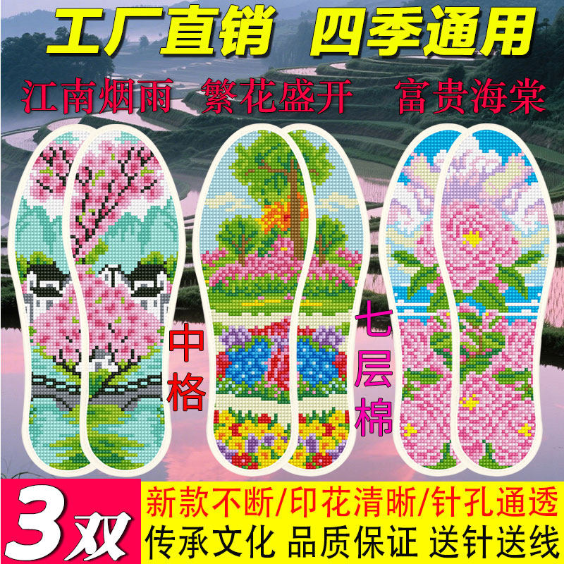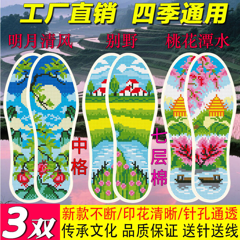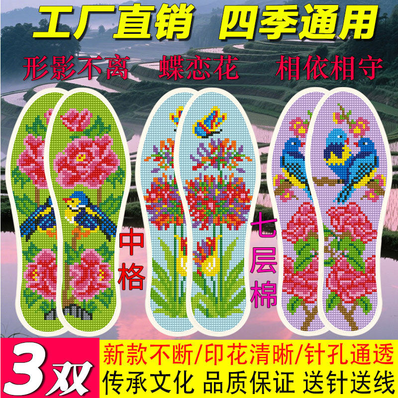 七层棉布鞋垫新款十字绣带针线半成品鞋手工刺绣不褪色20265年马