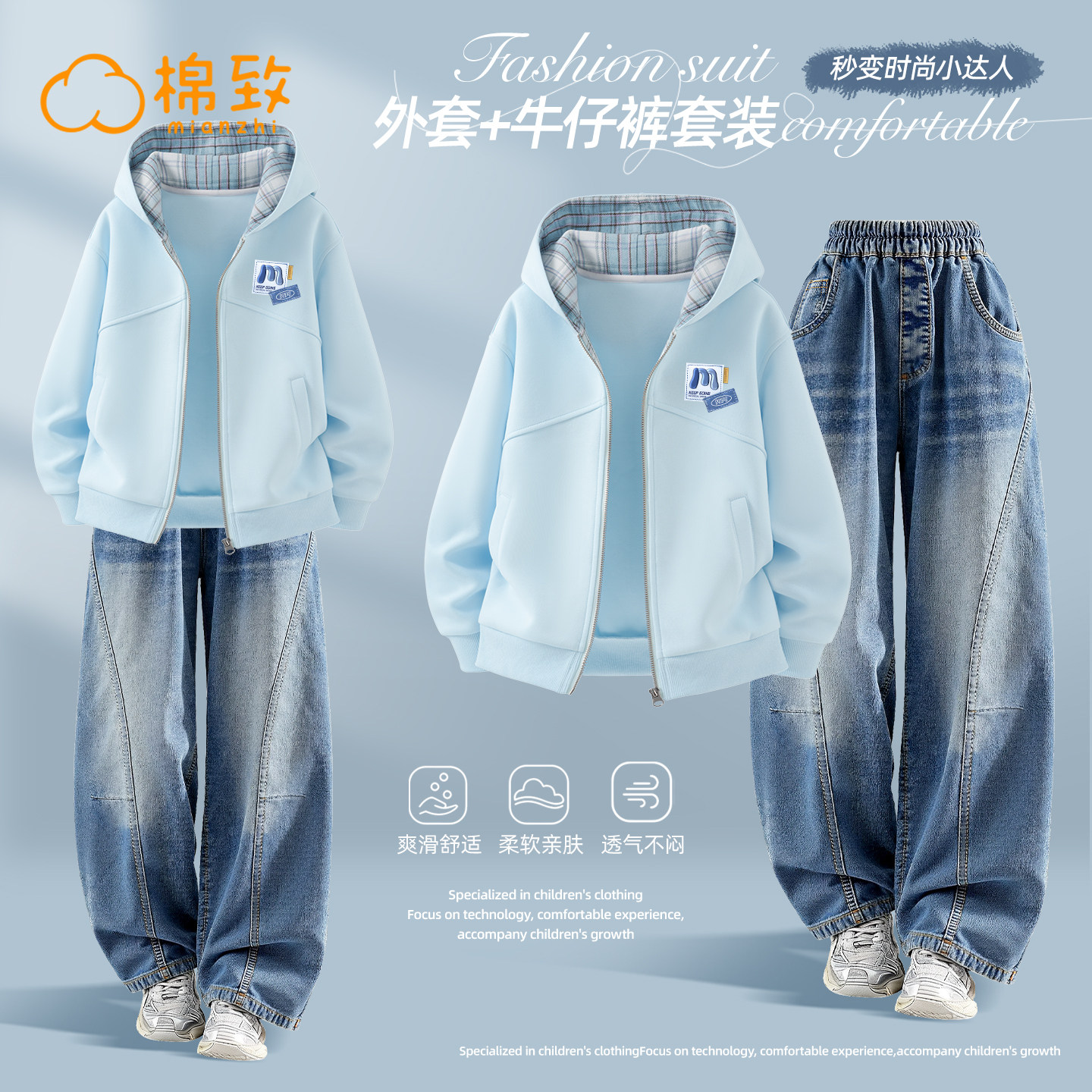 棉致男童春装套装春秋款2026新款春季休闲运动儿童外套大童牛仔裤