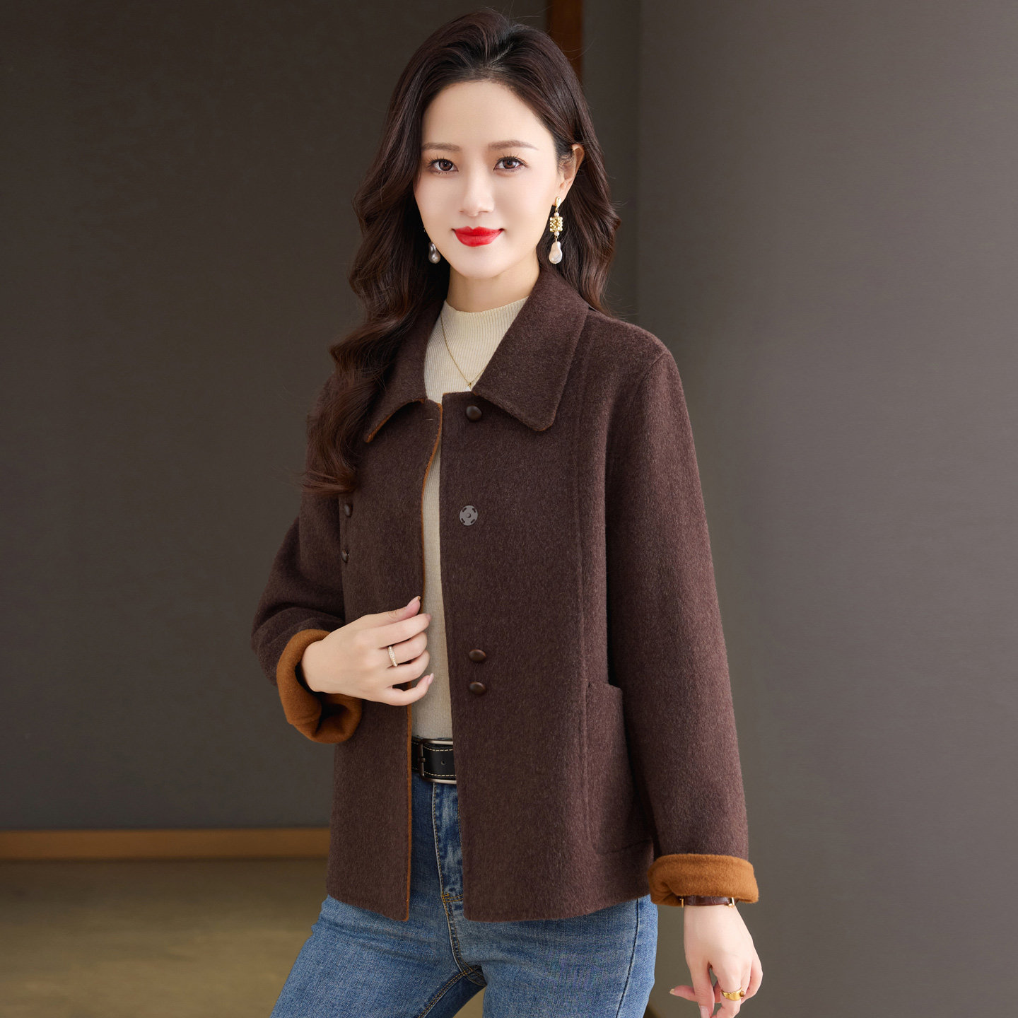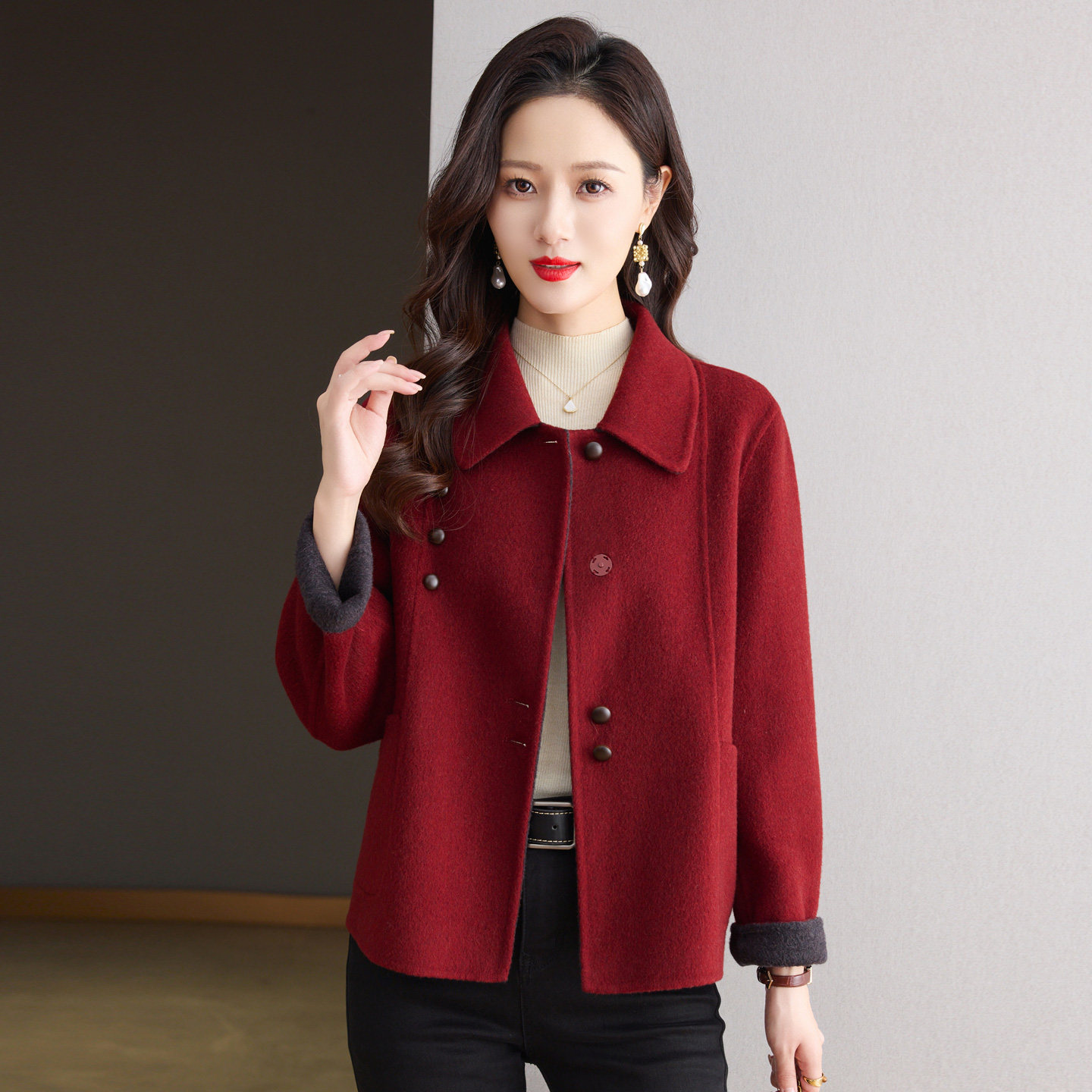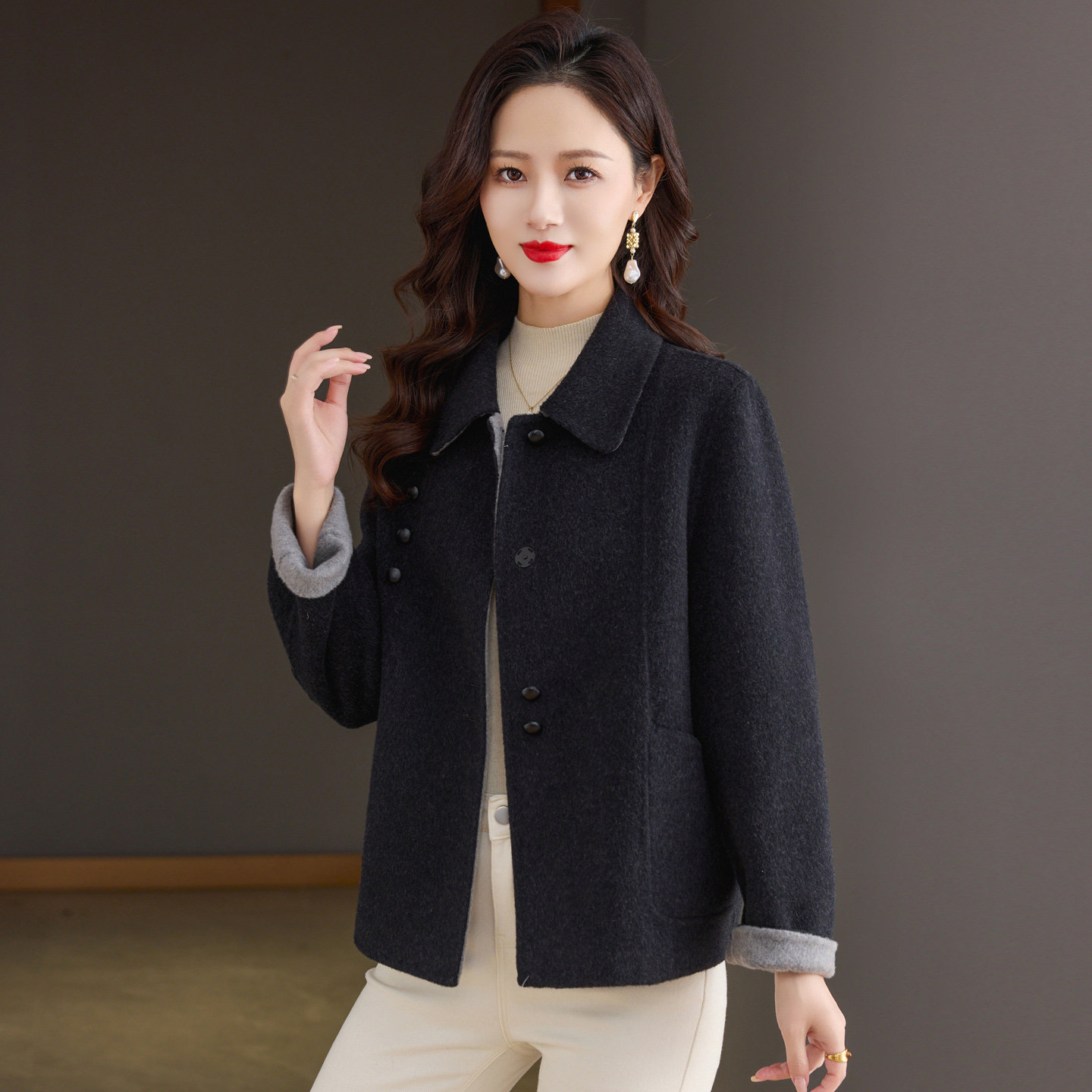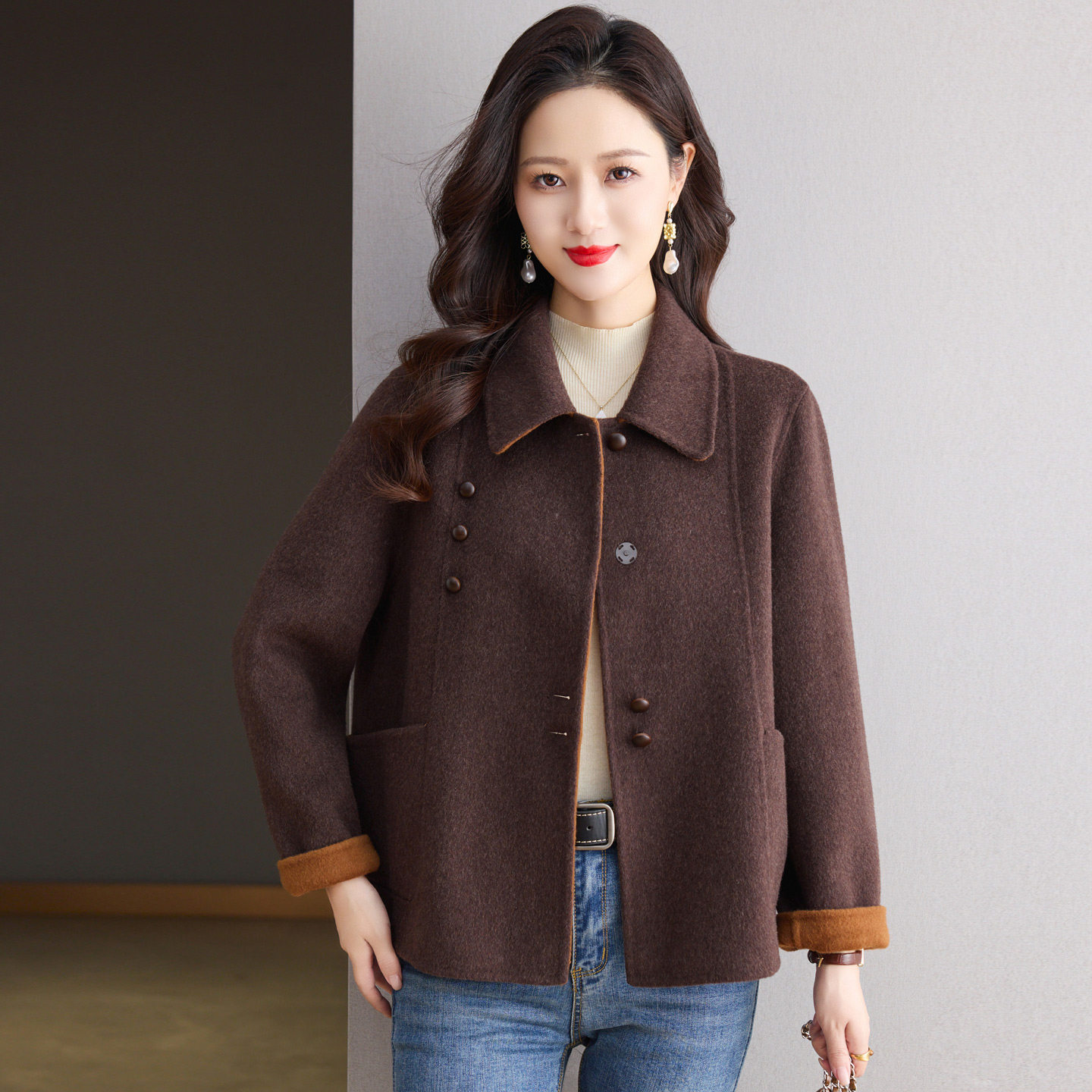 洋气减龄妈妈款双面羊绒大衣女小个子短款2025新款宽松羊毛呢外套