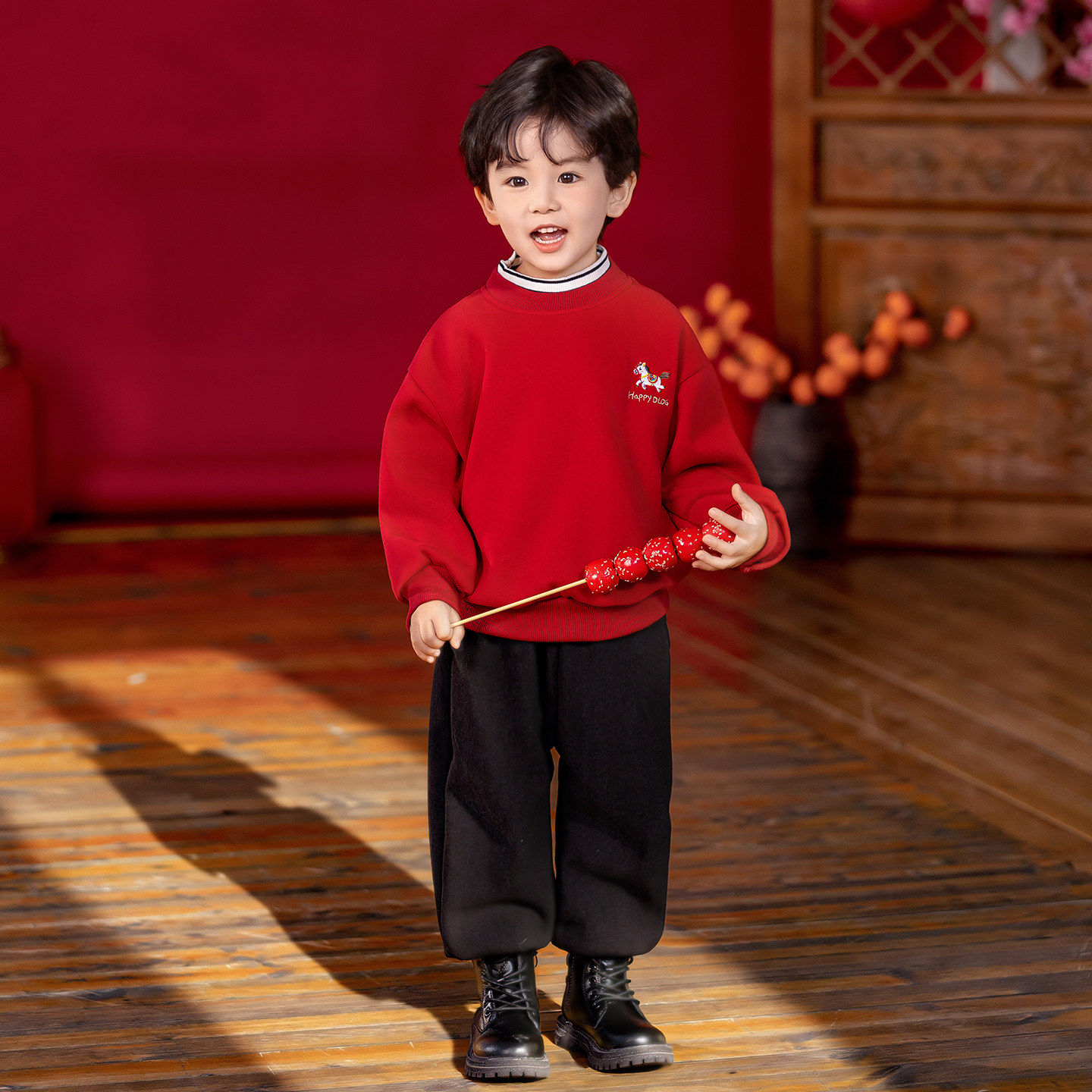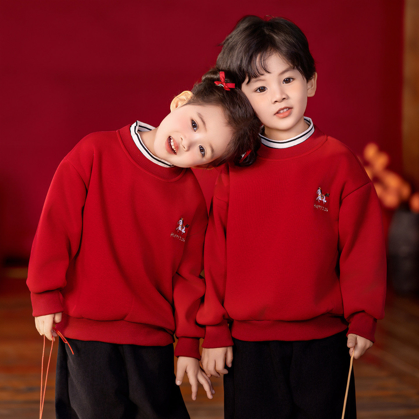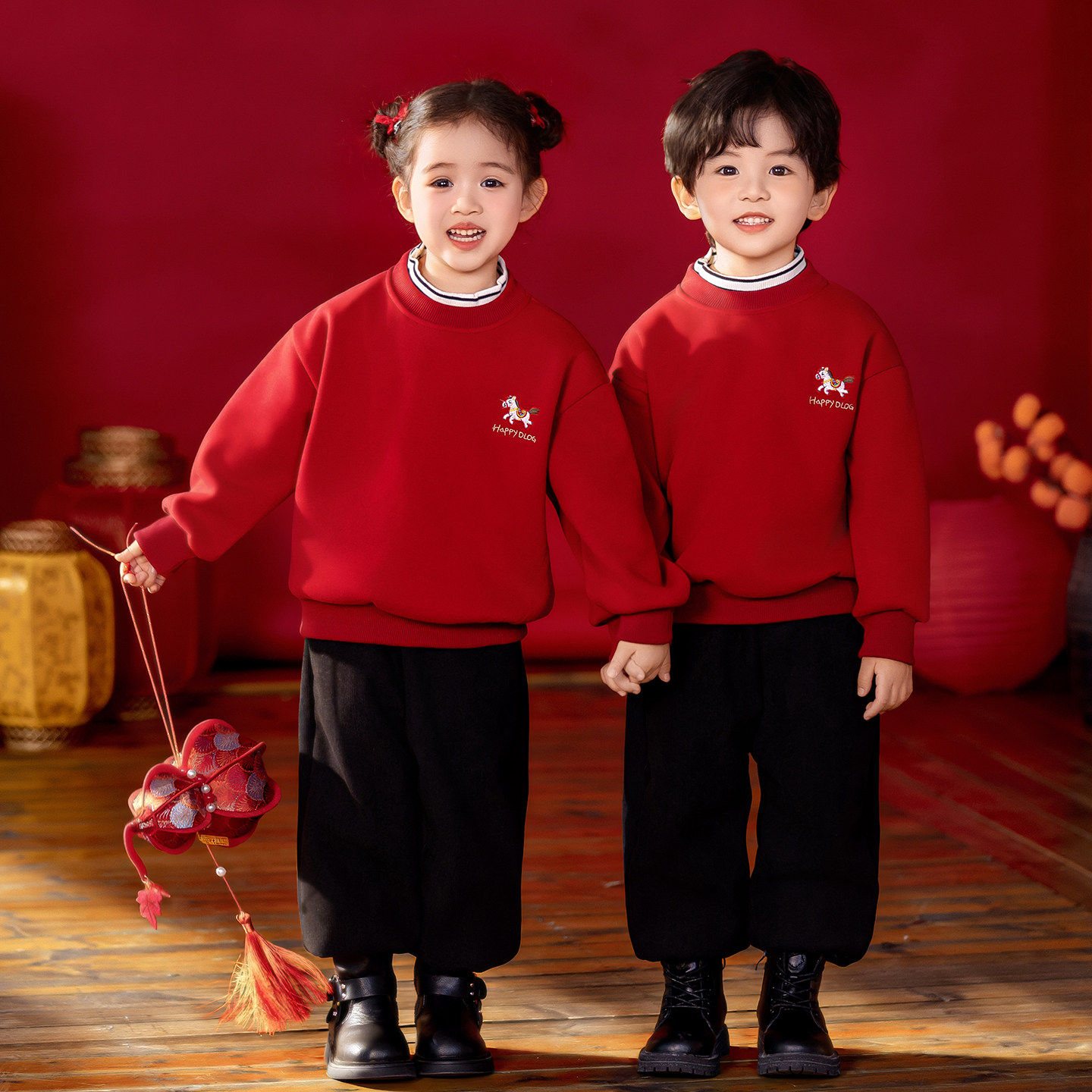 马年拜年服男童新年加绒卫衣套装儿童中国风女宝宝过年喜庆衣服潮