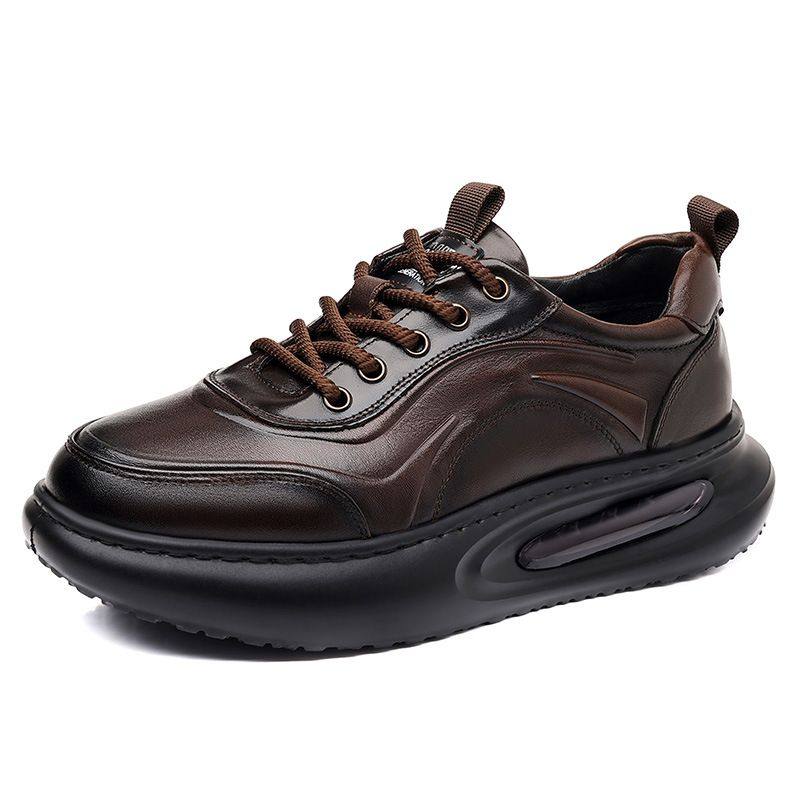 新款男鞋秋季潮鞋头层牛皮男士运动休闲鞋男士厚底增高男鞋老爹鞋